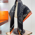 Complication Equestre Scarf 90 CM In Black Mix White Orange Silk Twill 345896