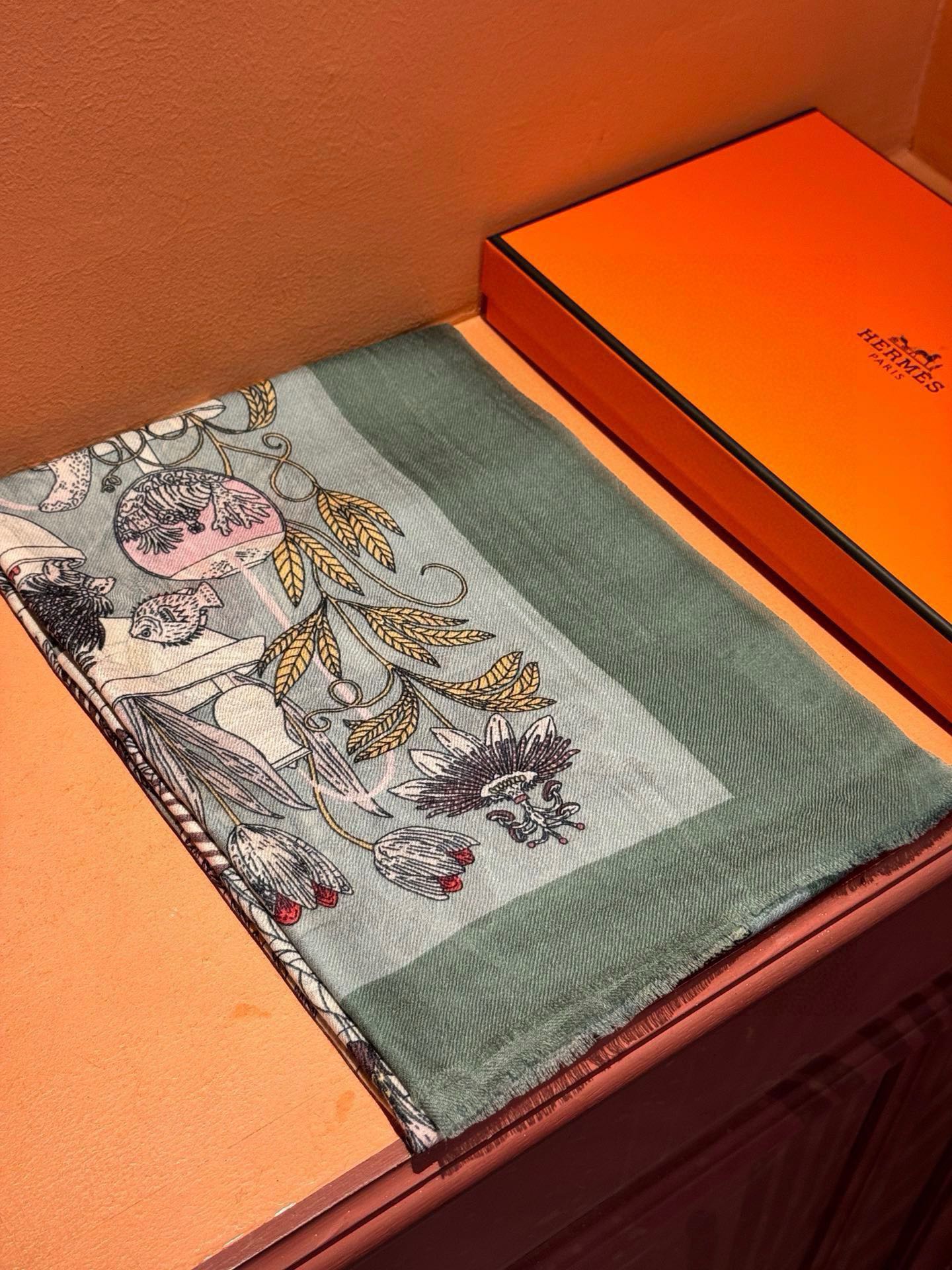 EXOTIC PARADISE CASHMERE SCARF 200 CM EMERALD GREEN MIX COLORFUL CASHMERE