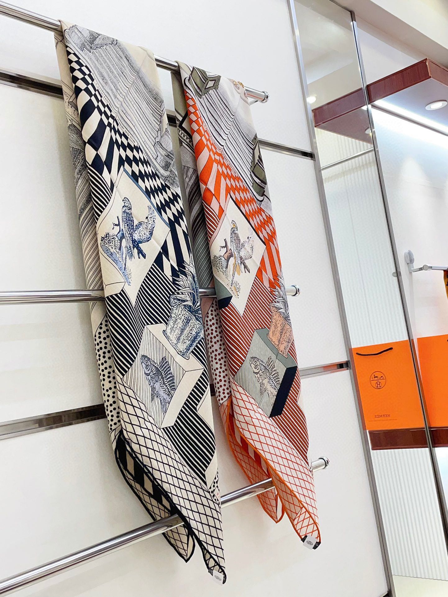 Grand Theatre Nouveau Scarf 135 CM In Orange Colorful Cashmere And Silk 362248