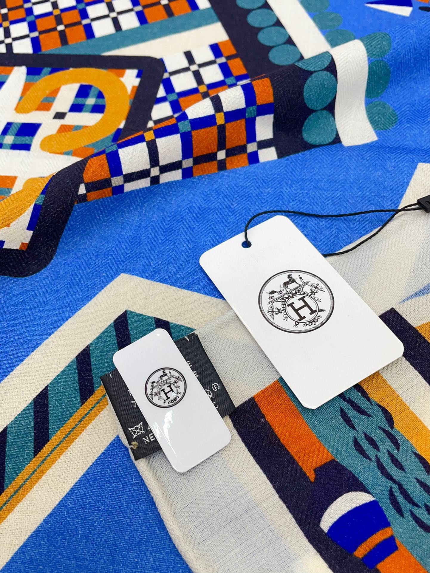 Haute Parure Scarf 135 CM Blue Colorful Cashmere And Silk 405069