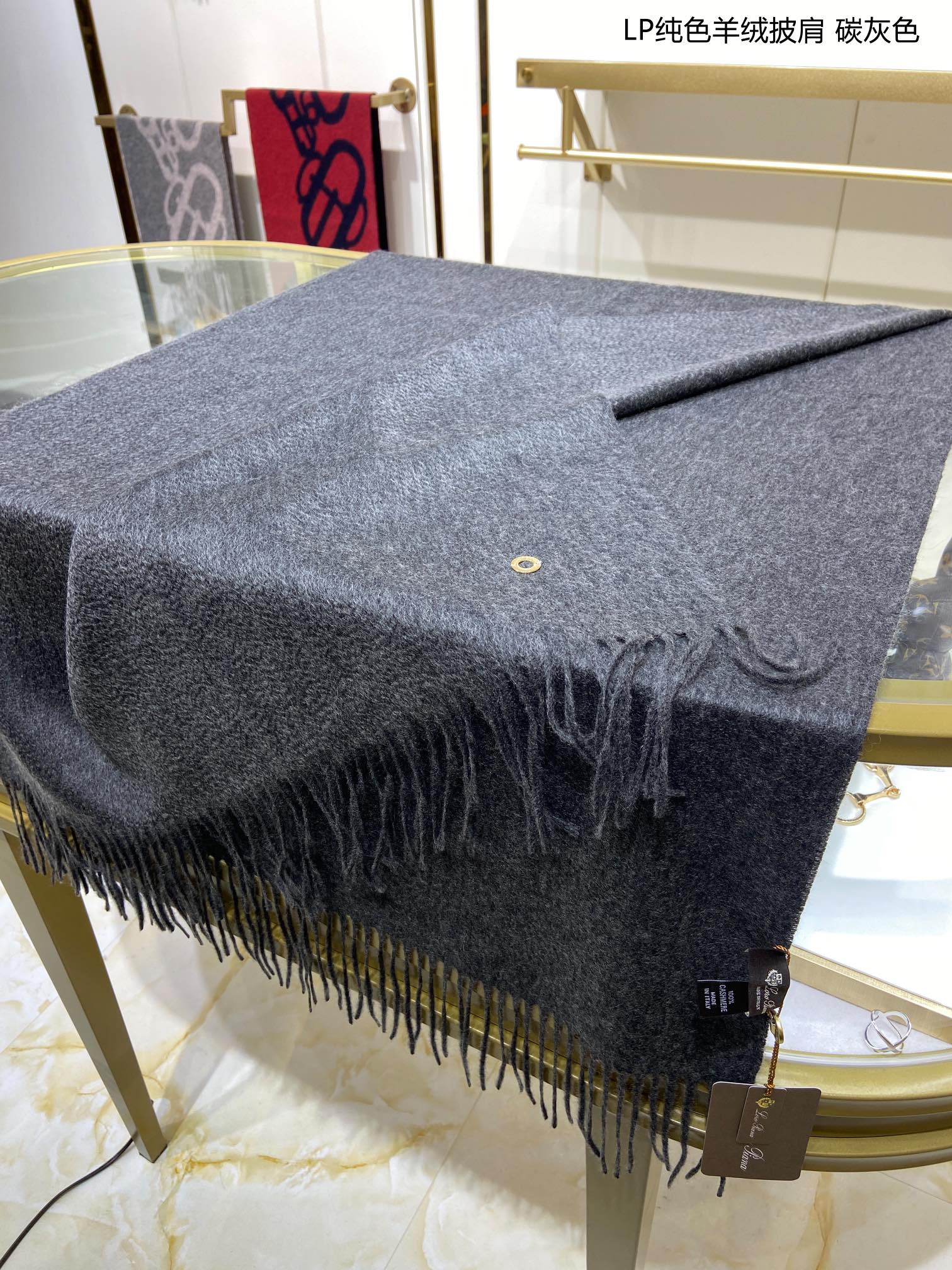 LP Grande Unita Scarf 200 CM In Black Grey Cashmere 645516