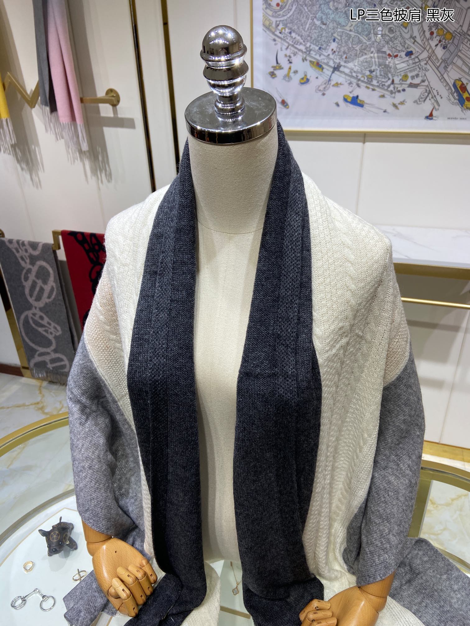 LP Scarf 190 CM In Grey White Mix Black Cashmere 649676
