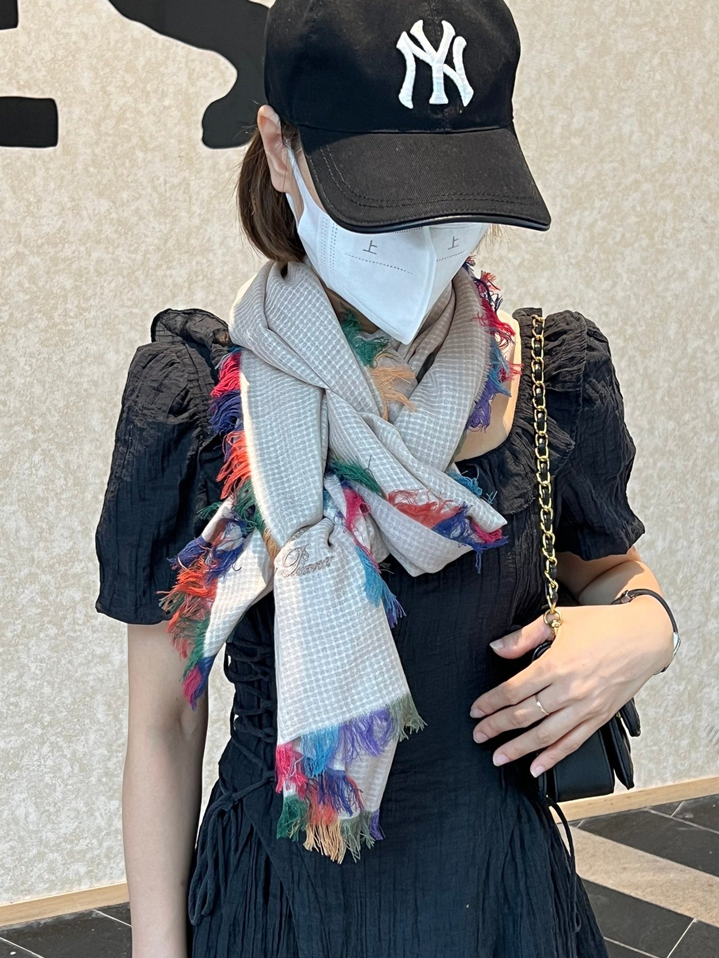LP Scarf 190 CM In Light Beige Colorful Waffle Fabric Woven 975483