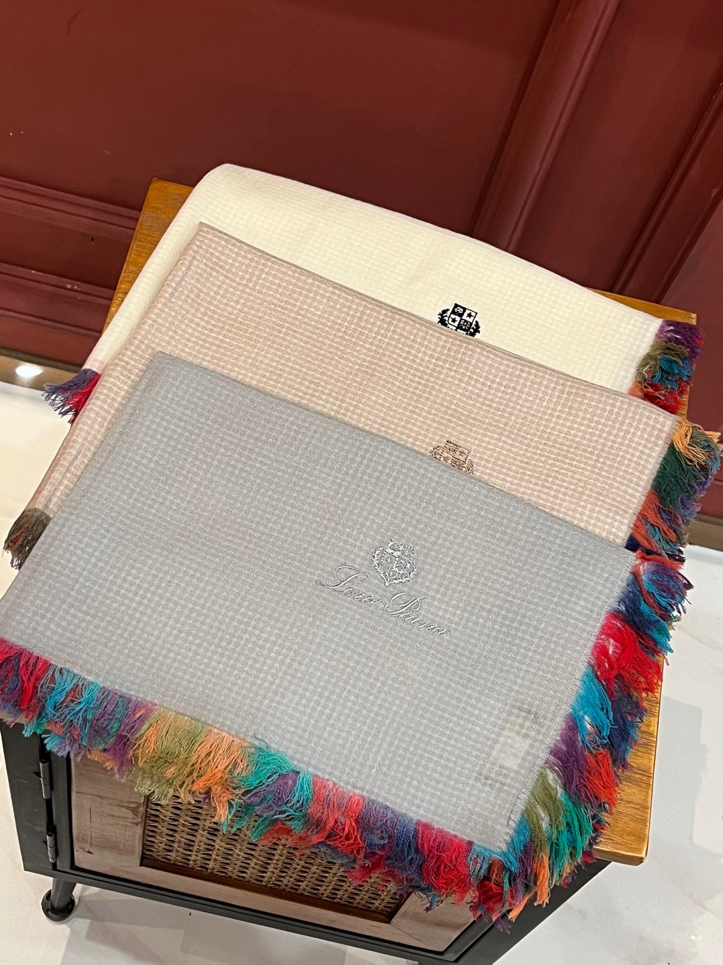 LP Scarf 190 CM In White Colorful Waffle Fabric Woven 975484