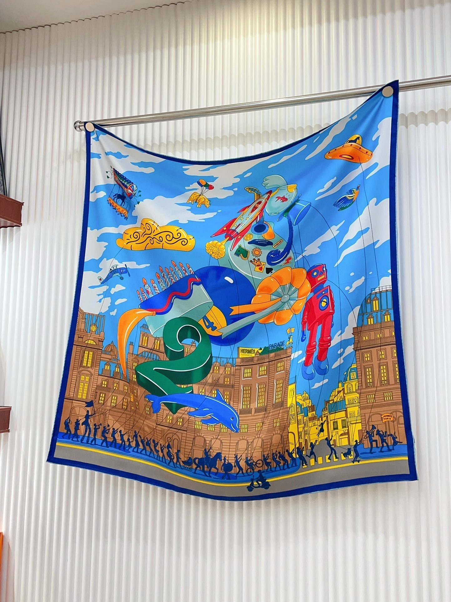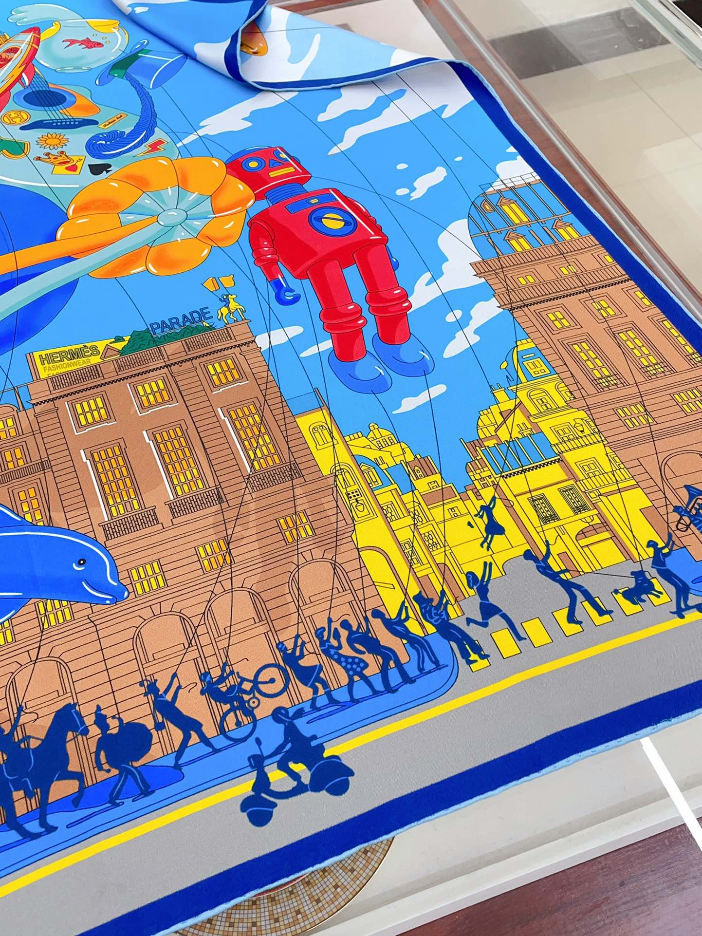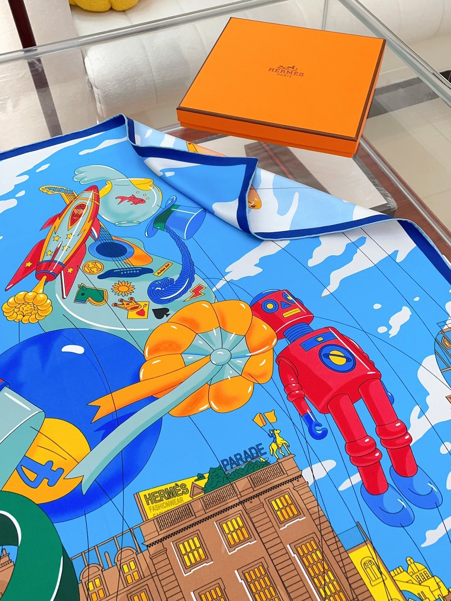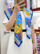 Parade Scarf 90 CM In Blue Colorful Silk Twill 310307