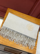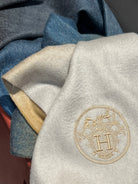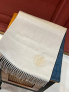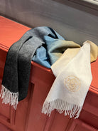 Scarf 190 CM In White Beige Mix Black Blue Cashmere