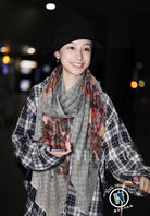 SCARF 200 CM IN DOVE GRAY CASHMERE WITH COLORFUL FLOWER 405255