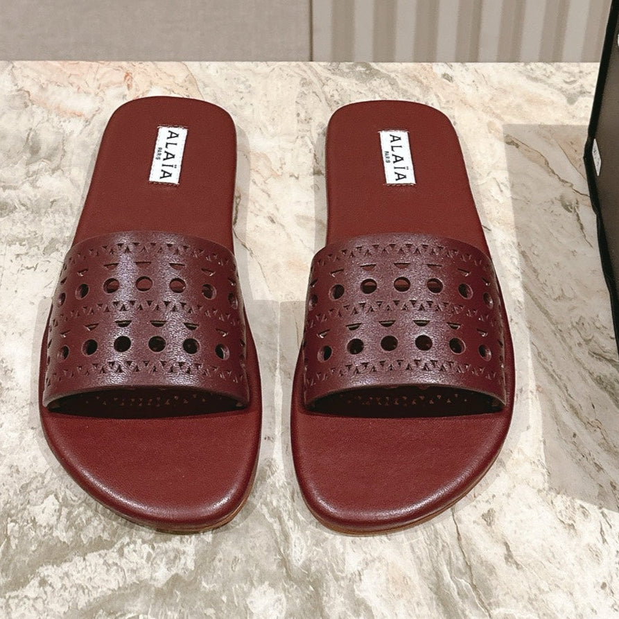 Alaia 2025 Hollow Slippers Red Leather 293654