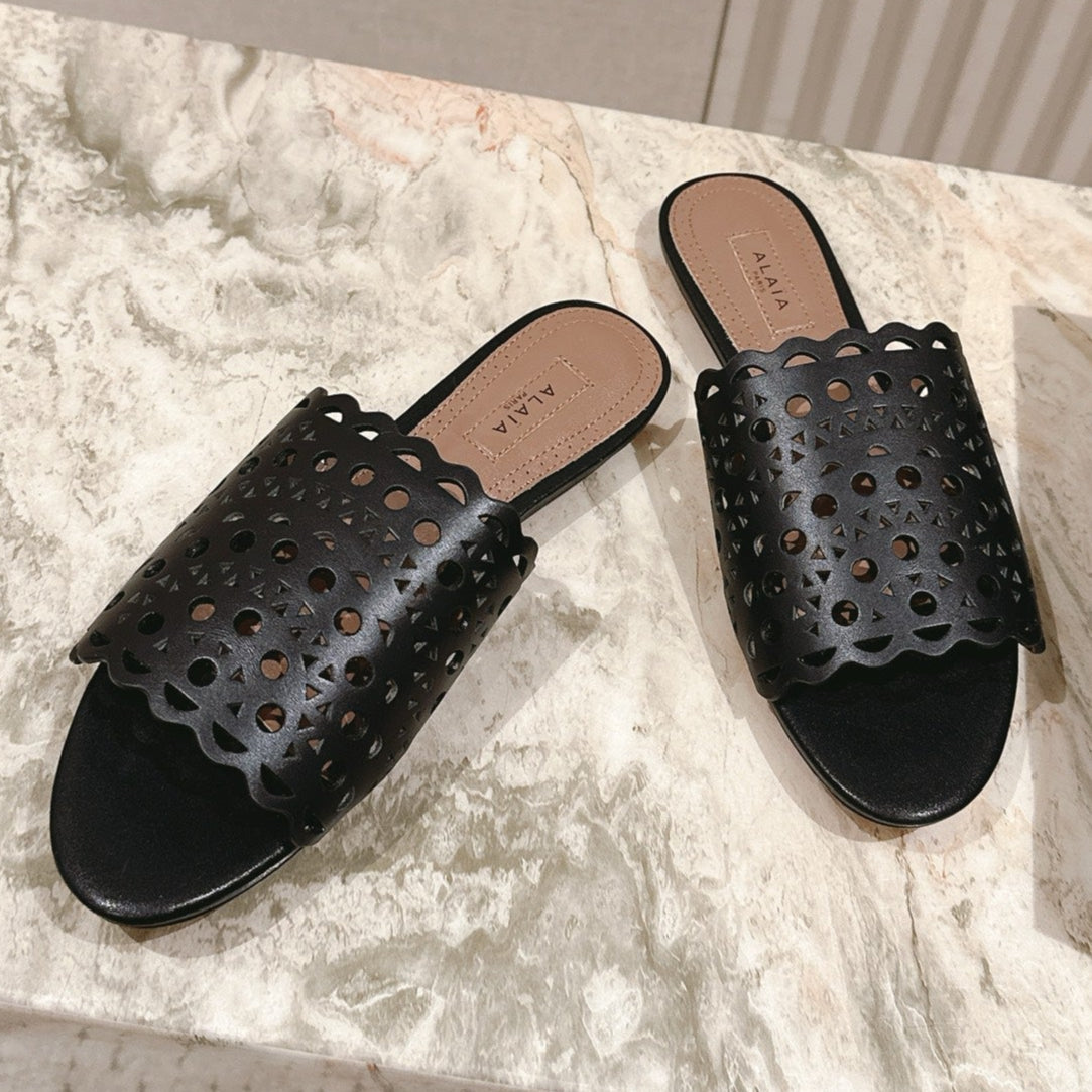 Alaia 2025 Vienne Slippers Black Lambskin 293659