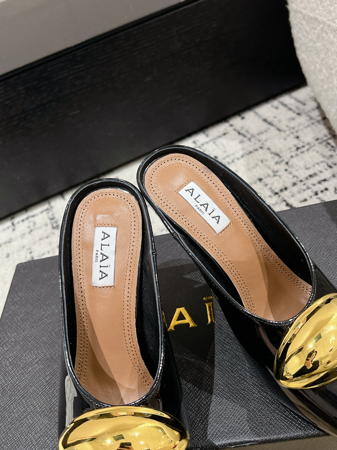 Alaia 25 Azzedine High Heels Mules With Gold Hardware Glossy Black Calfskin 293188
