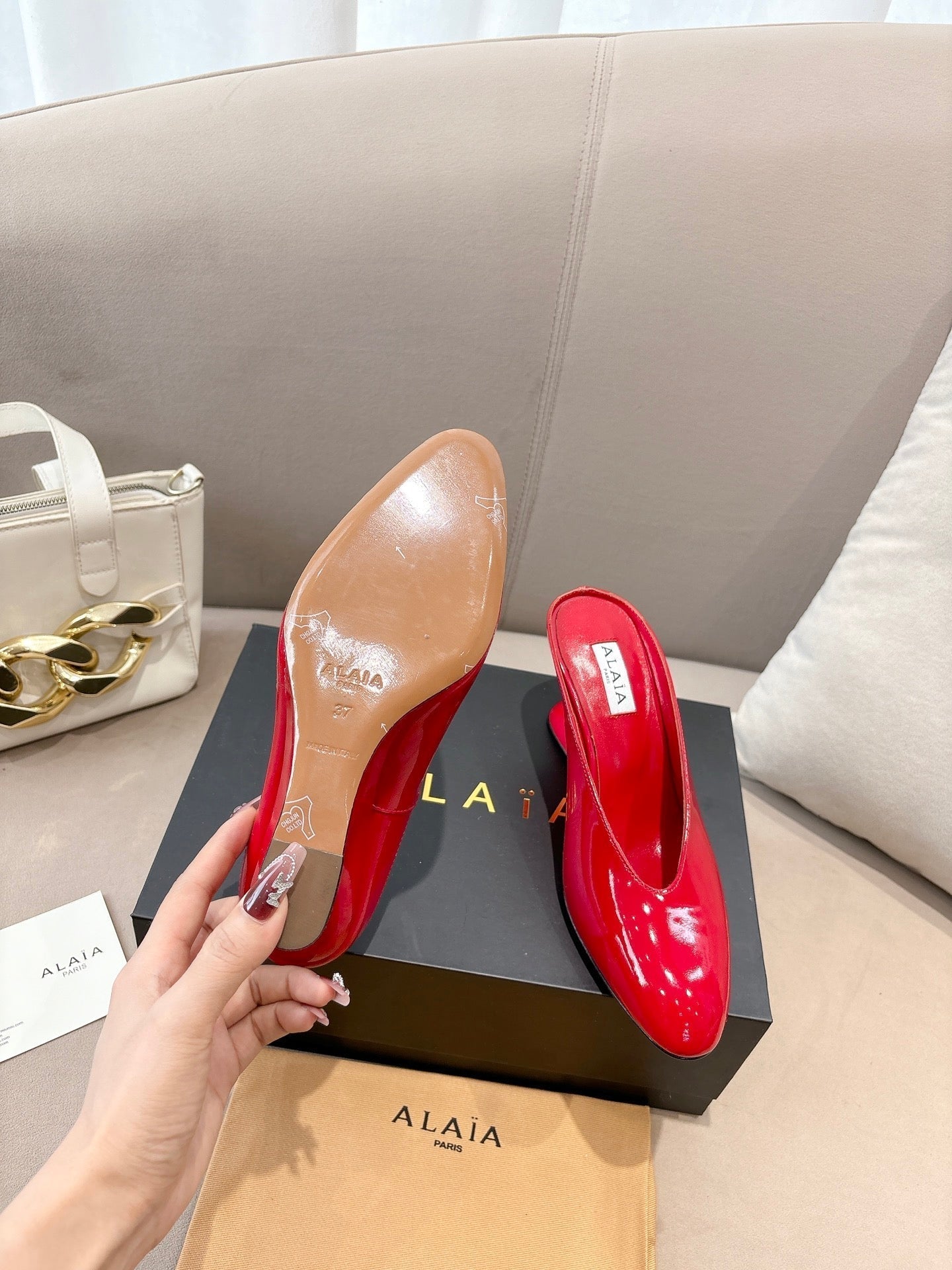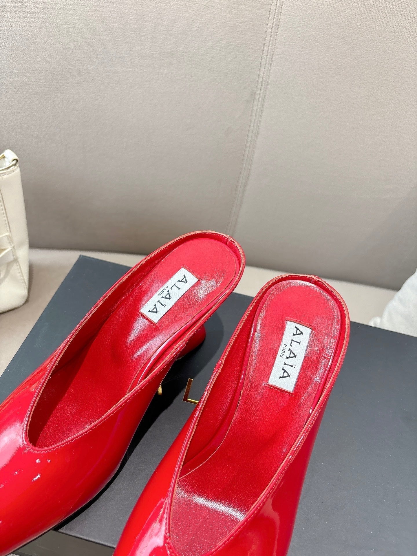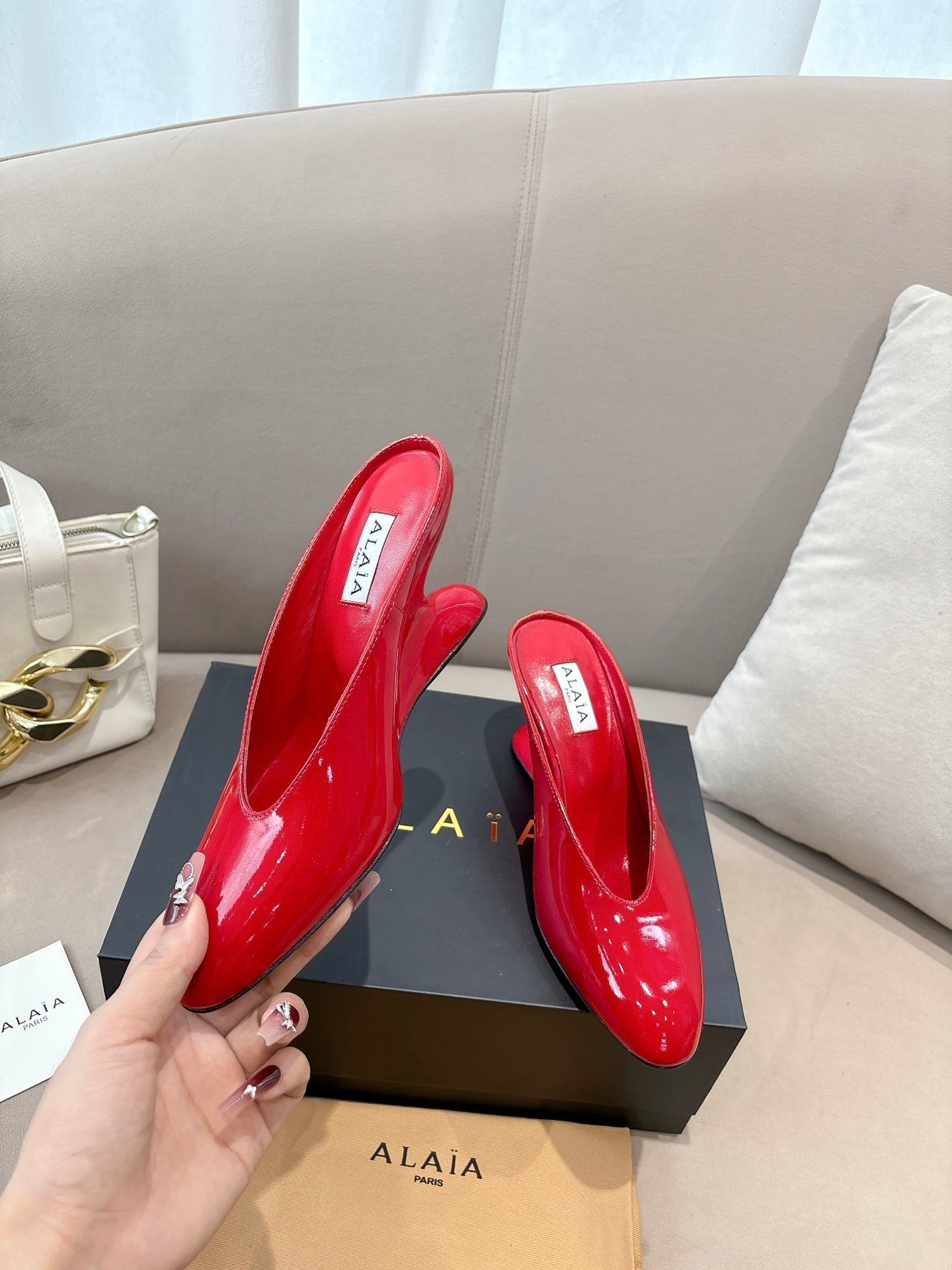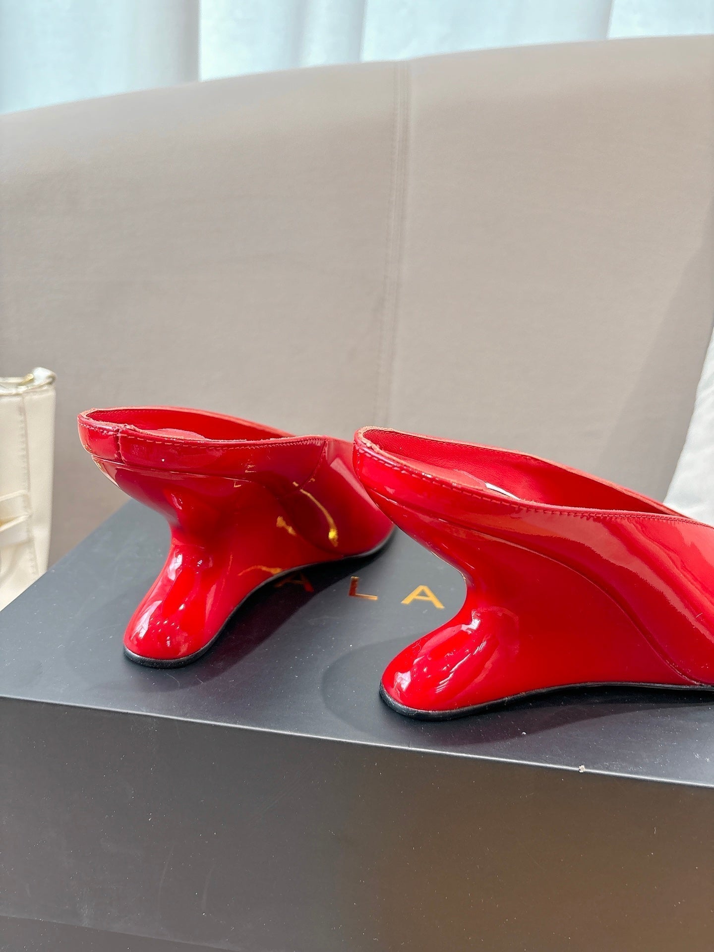 Alaia 25 Curve Wedge Mules Red Lambskin 293556