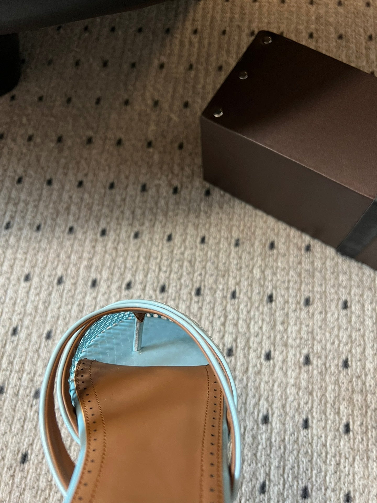 Alaia 25 Infradito Fishnet Flat Mules Lagoon Green Lampskin 303711