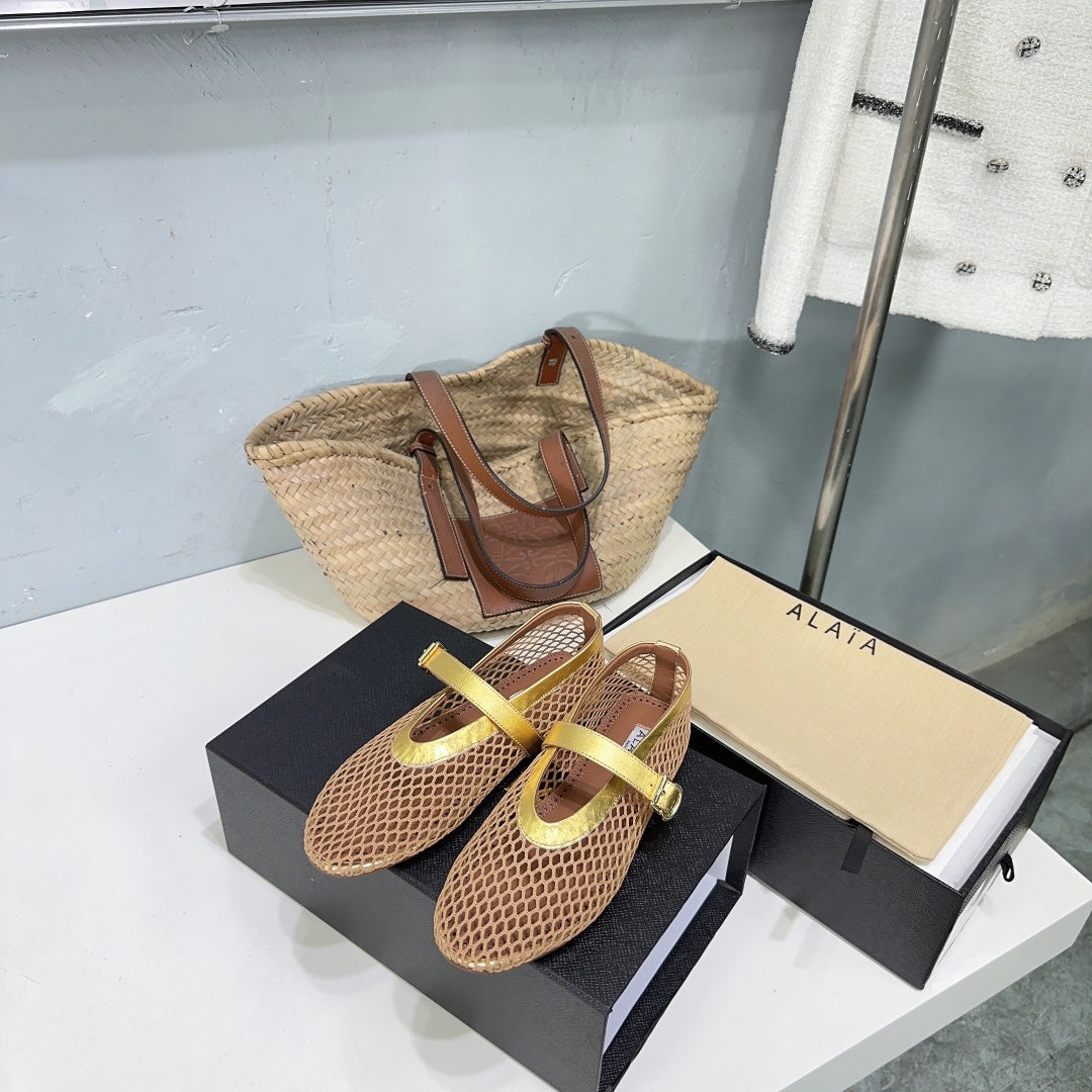 Alaia 25 Laminated Fishnet Ballet Flats Gold Lambskin 576441