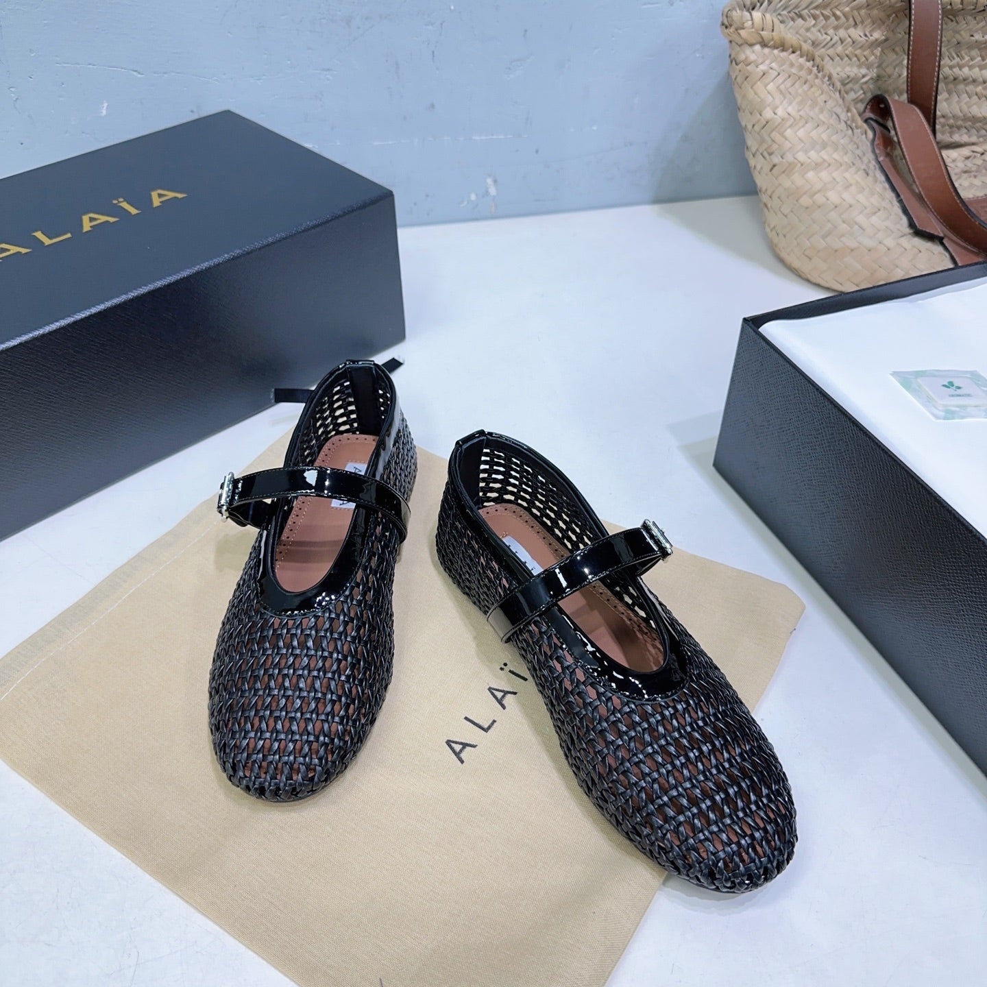 Alaia 25 Marry Janes Ballet Flats Black Wool Sheepskin 300453