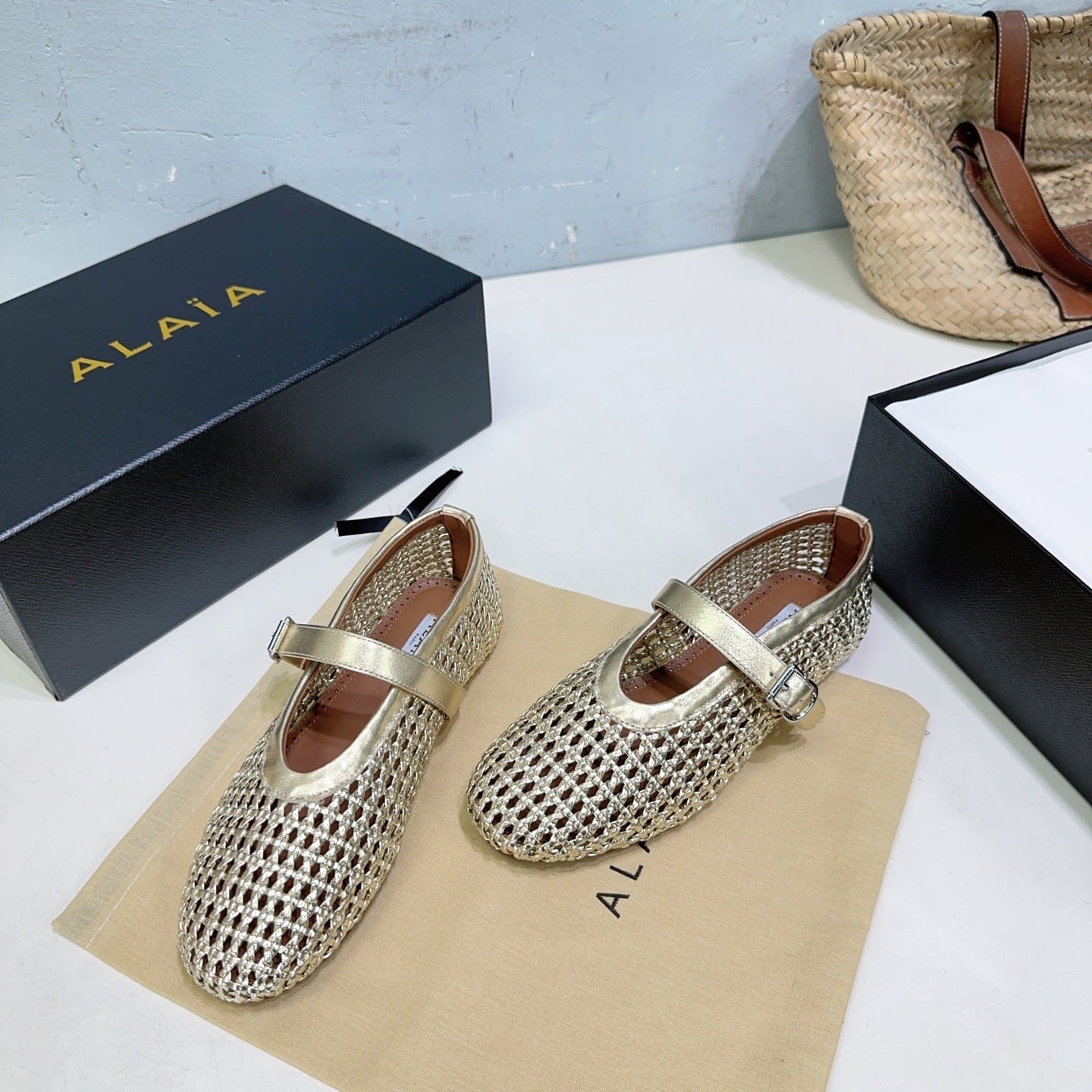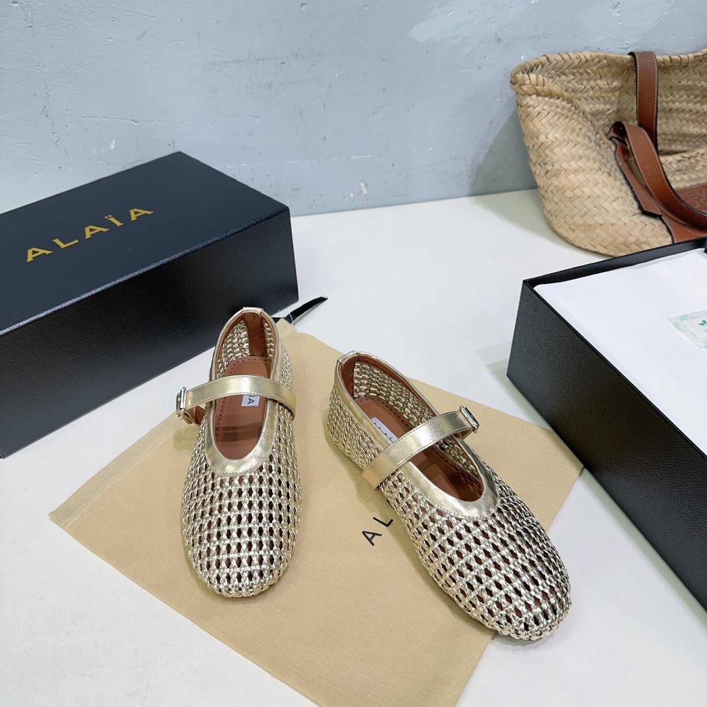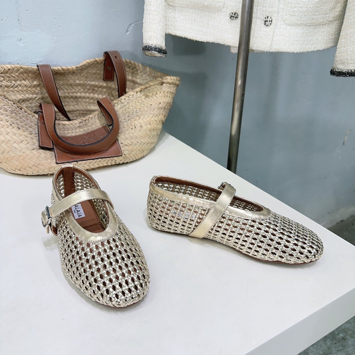 Alaia 25 Marry Janes Ballet Flats Gold Wool Sheepskin 300456
