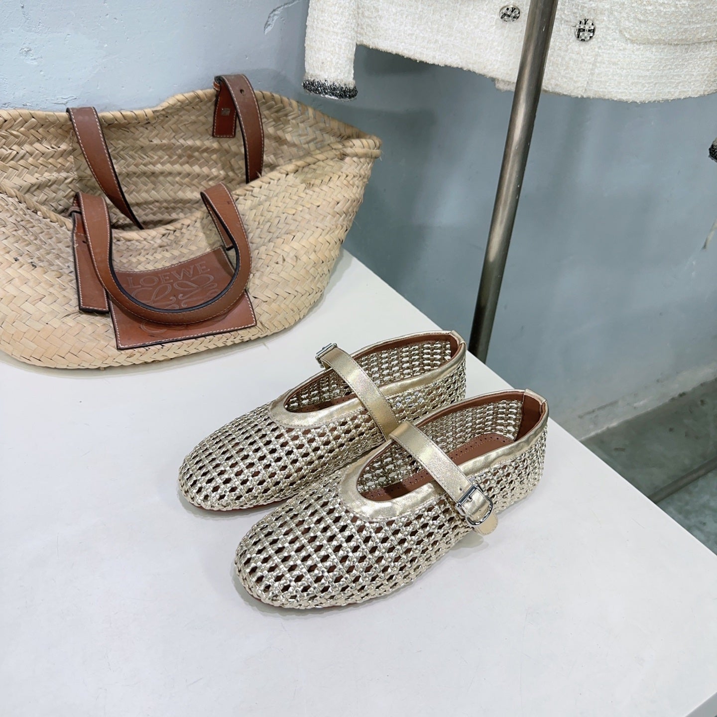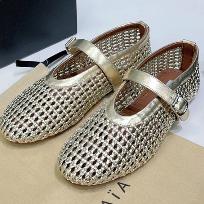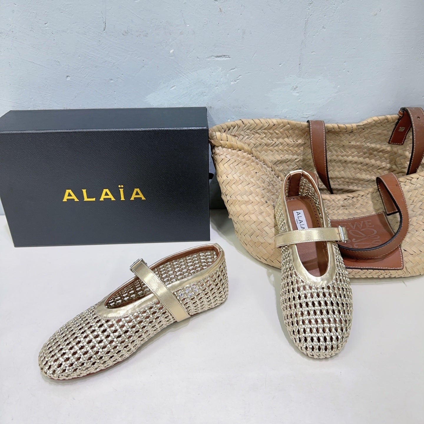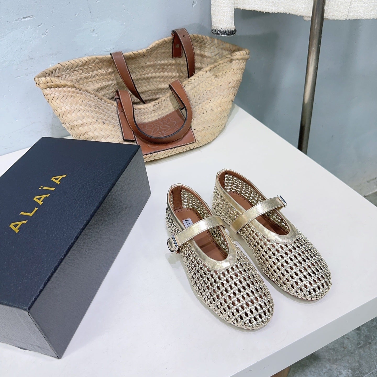 Alaia 25 Marry Janes Ballet Flats Gold Wool Sheepskin 300456