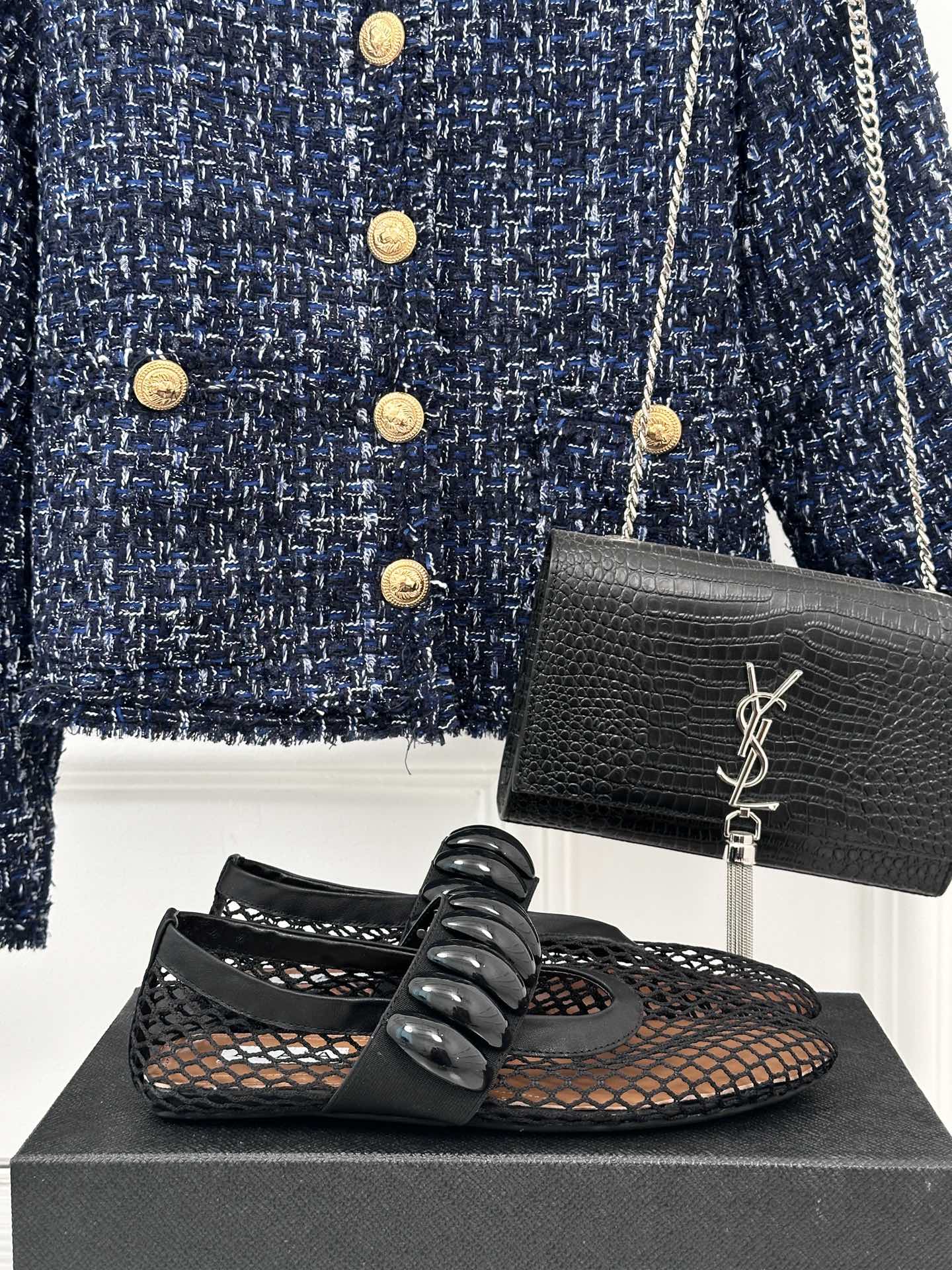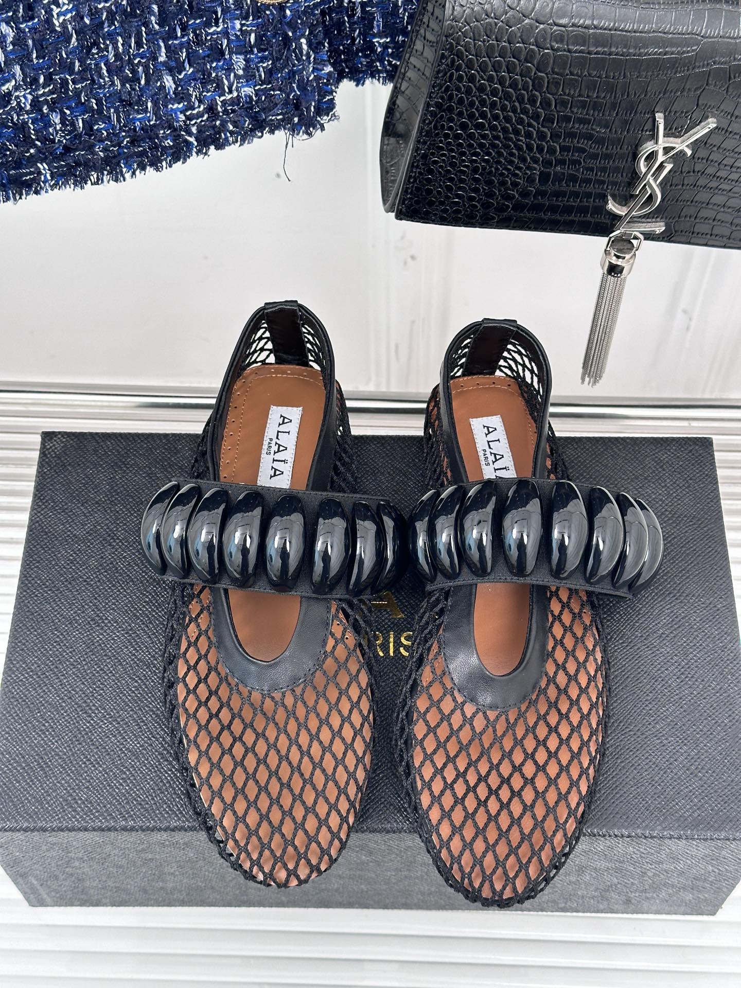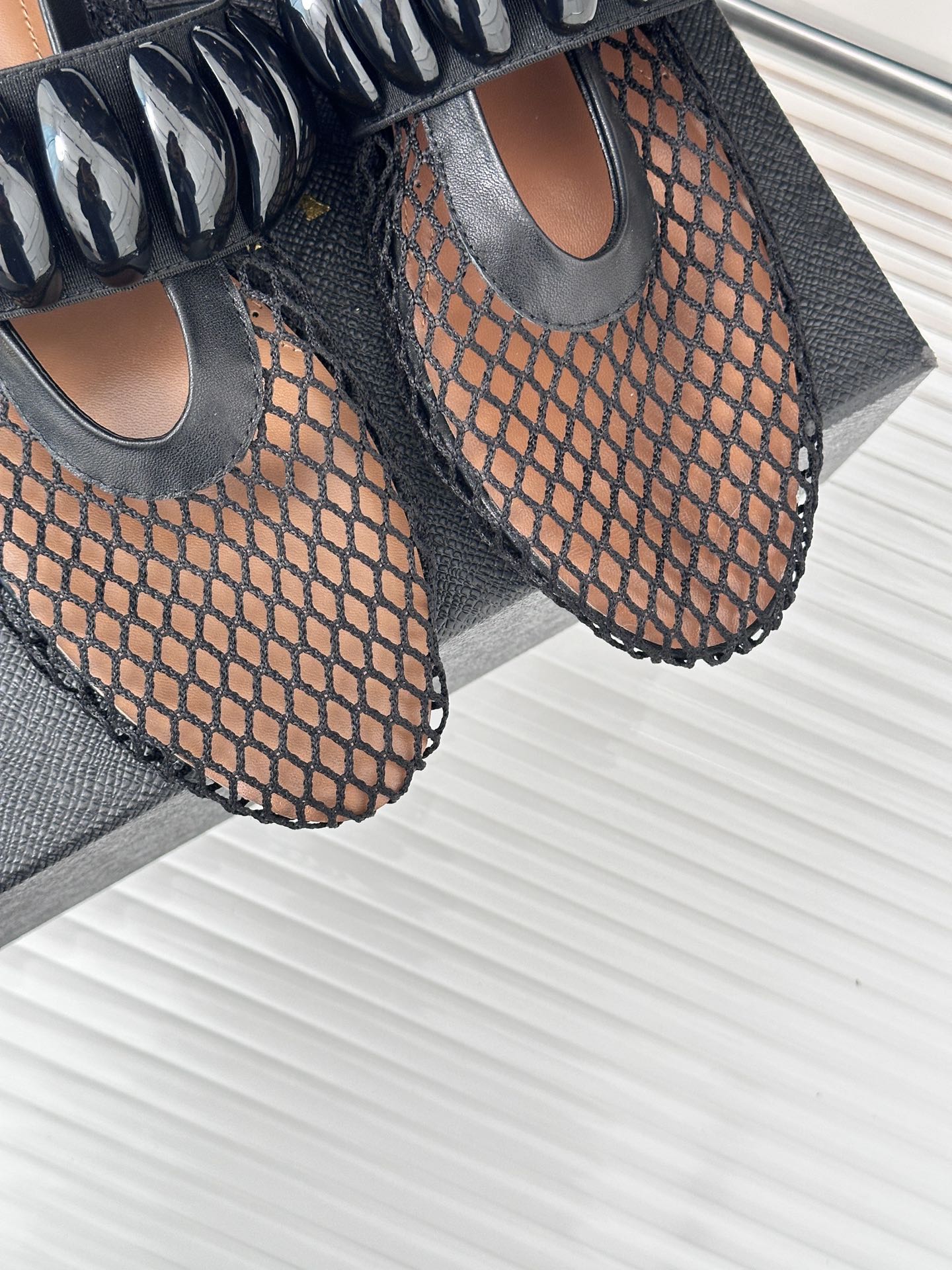 Alaia 25 Mary Jane Mesh Ballet Flats Black Calfskin 293251