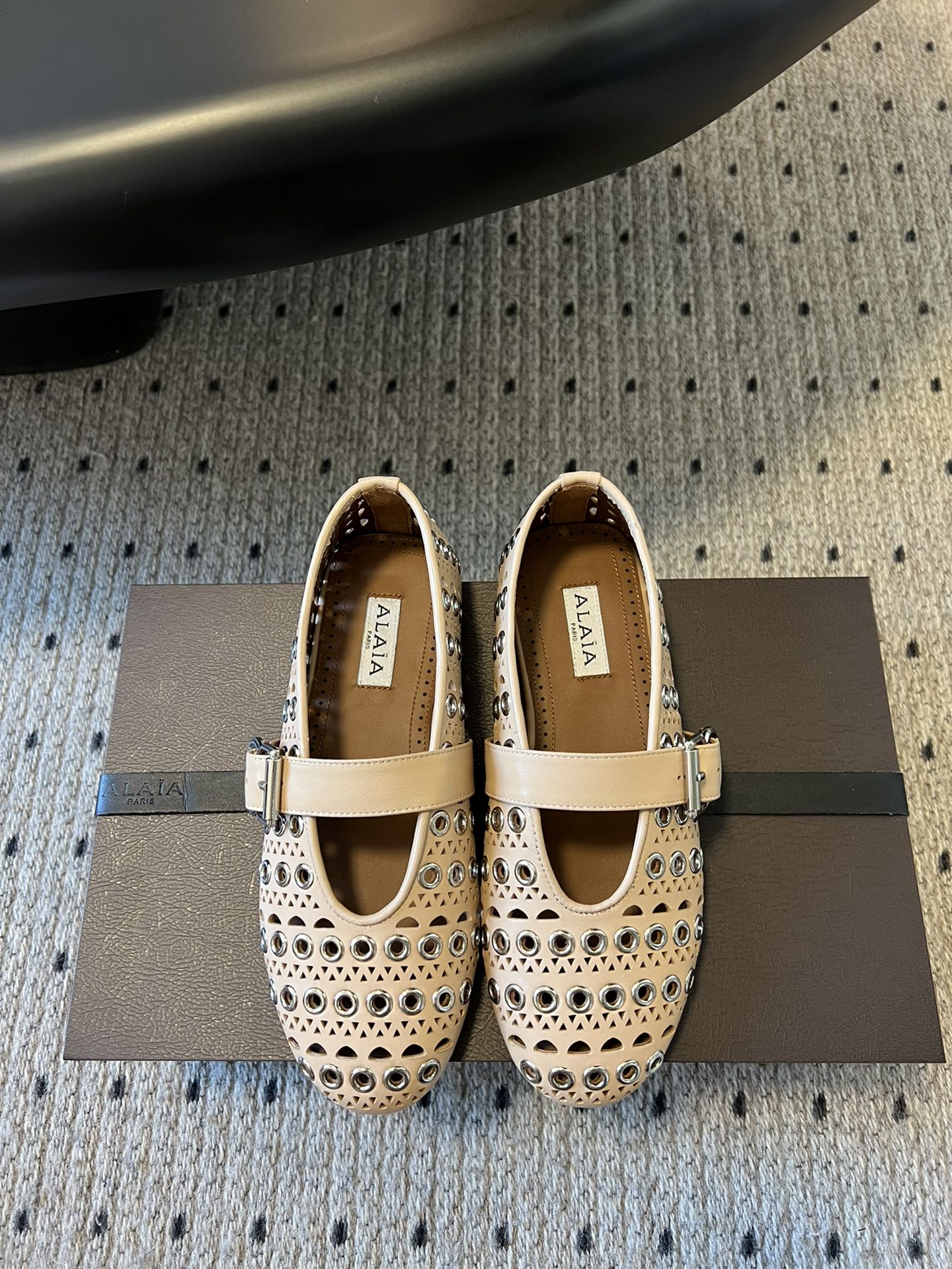 Alaia 25 Vienne With Eyelets Ballet Flats Nude Lambskin 303718