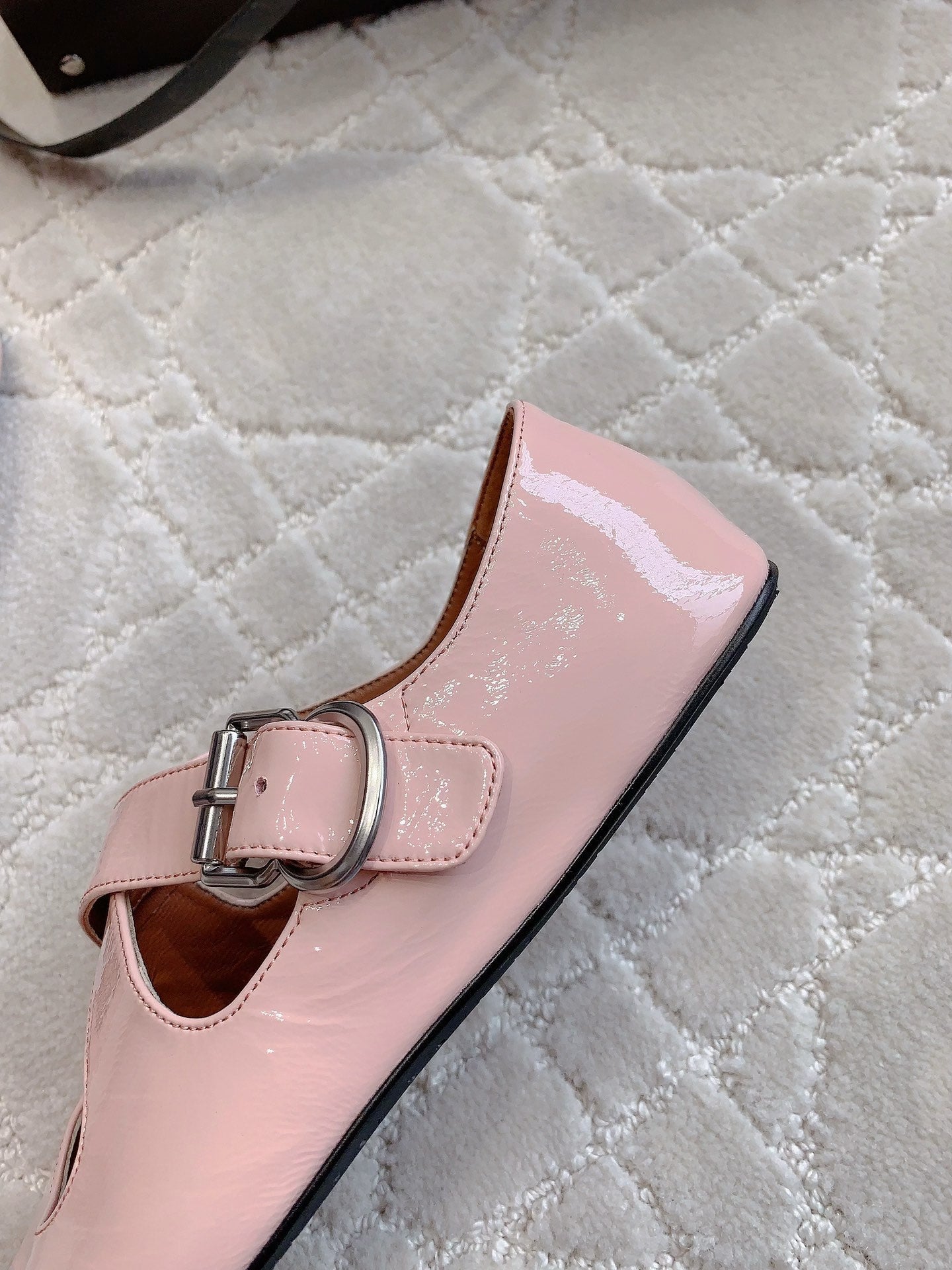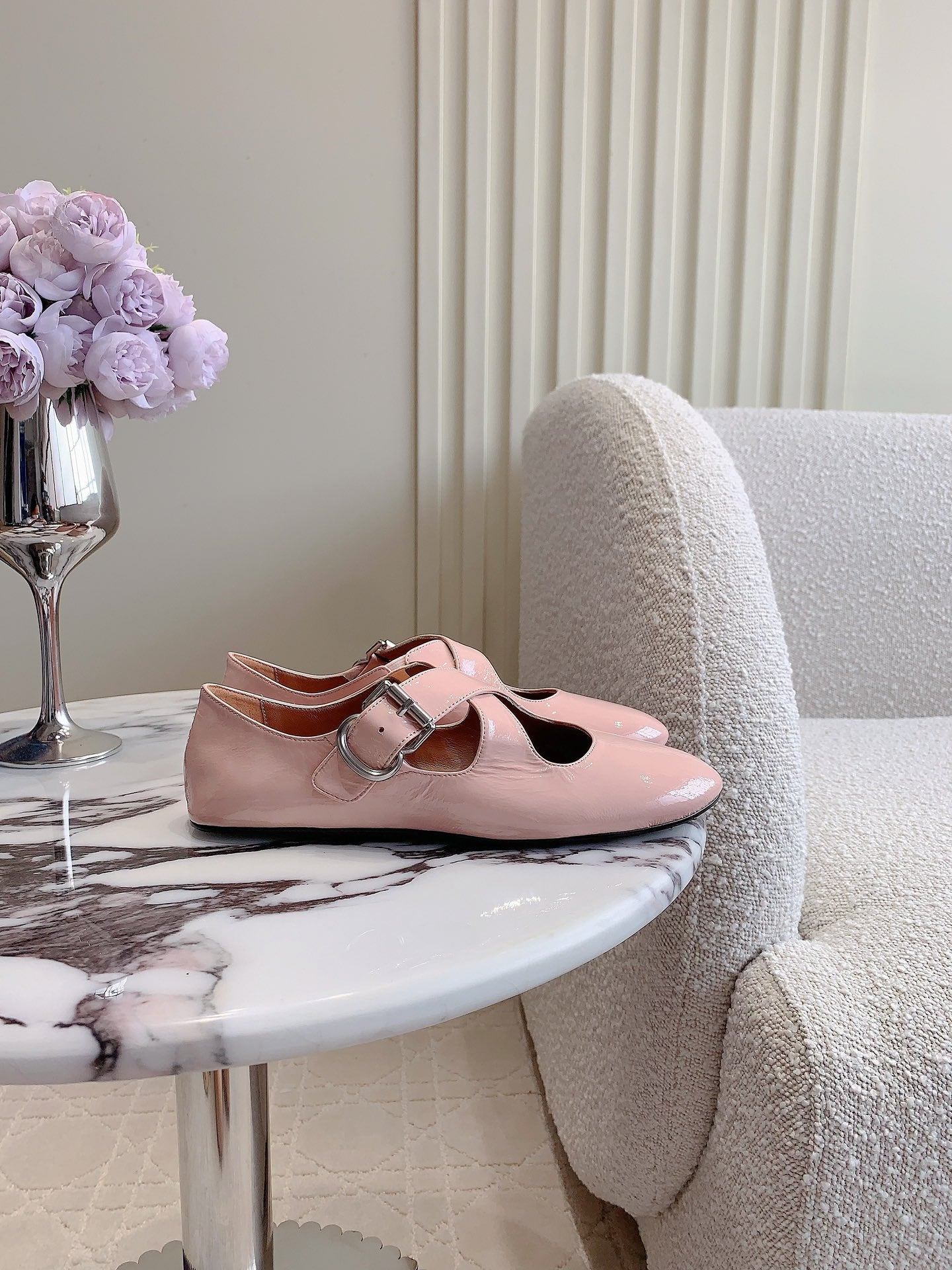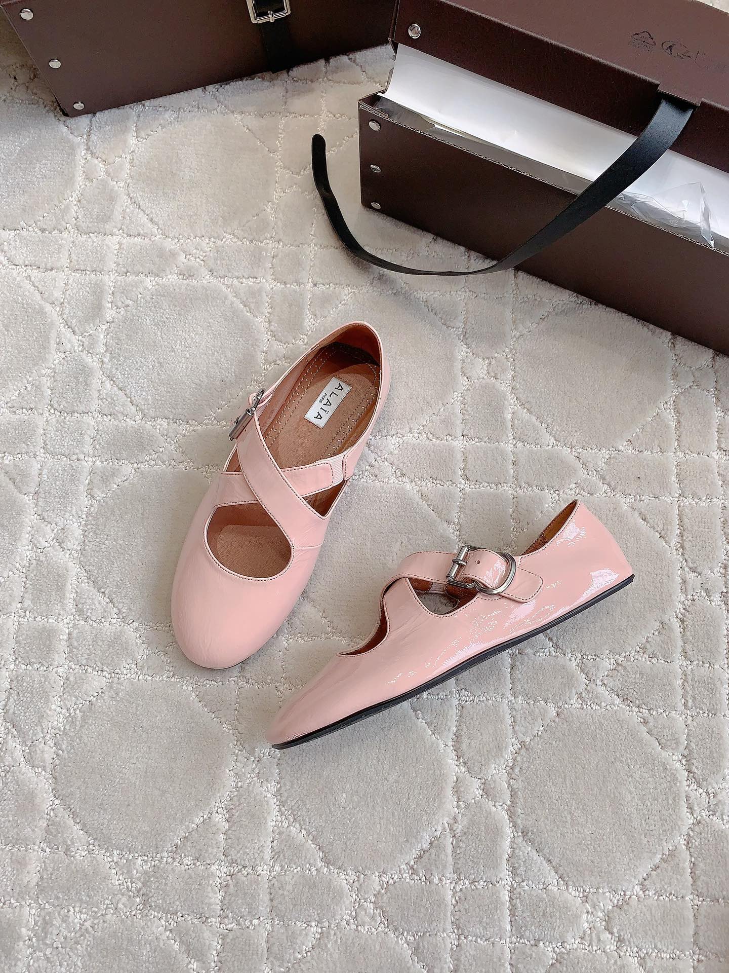 ALAIA CRISS CROSS BALLET FLAT IN BABY PINK LAMBSKIN WITH SILVER HARDWARE