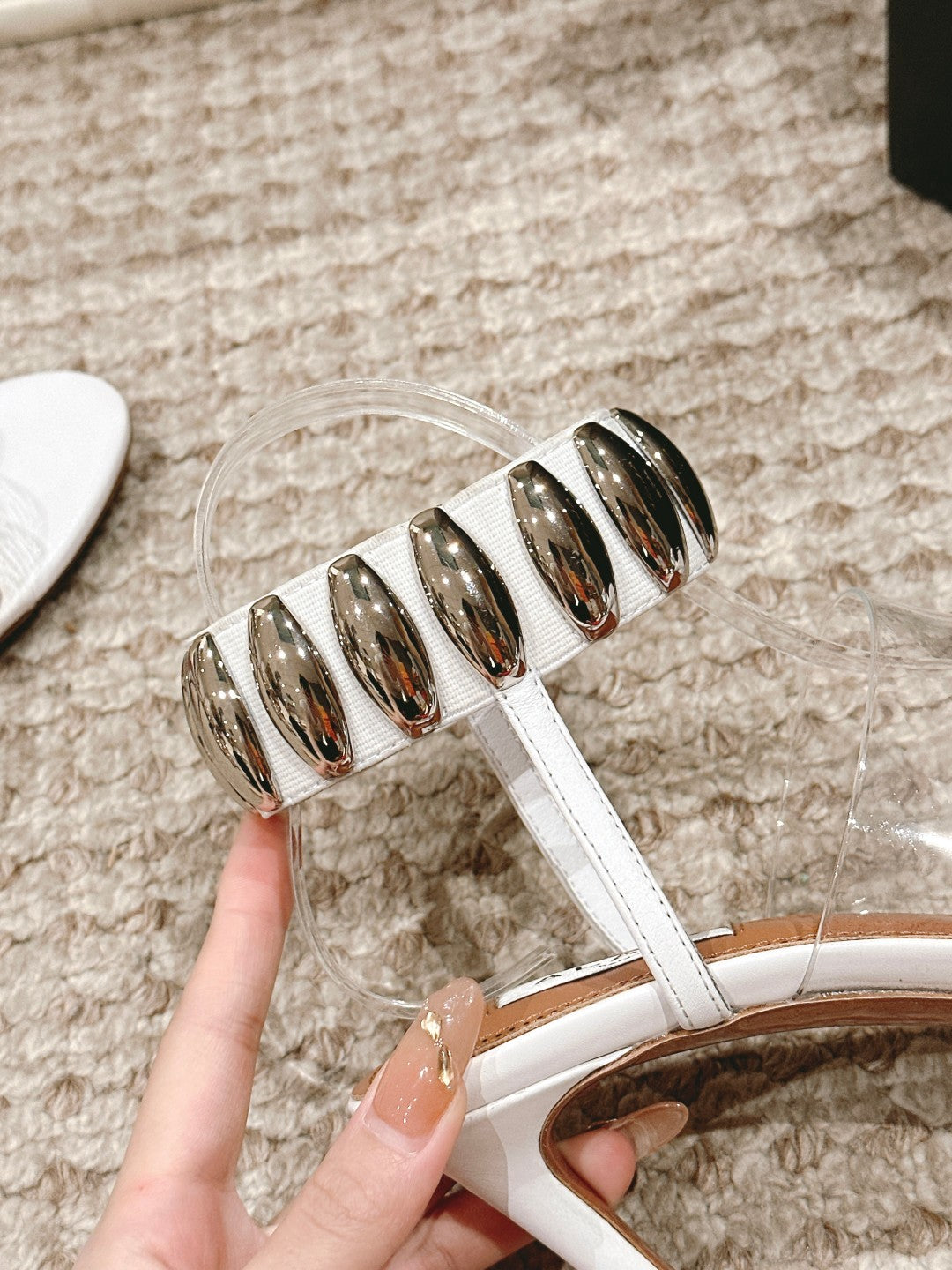 ALAIA HIGH SANDAL IN WHITE CALFSKN AND FILM WITH CRYSTAL