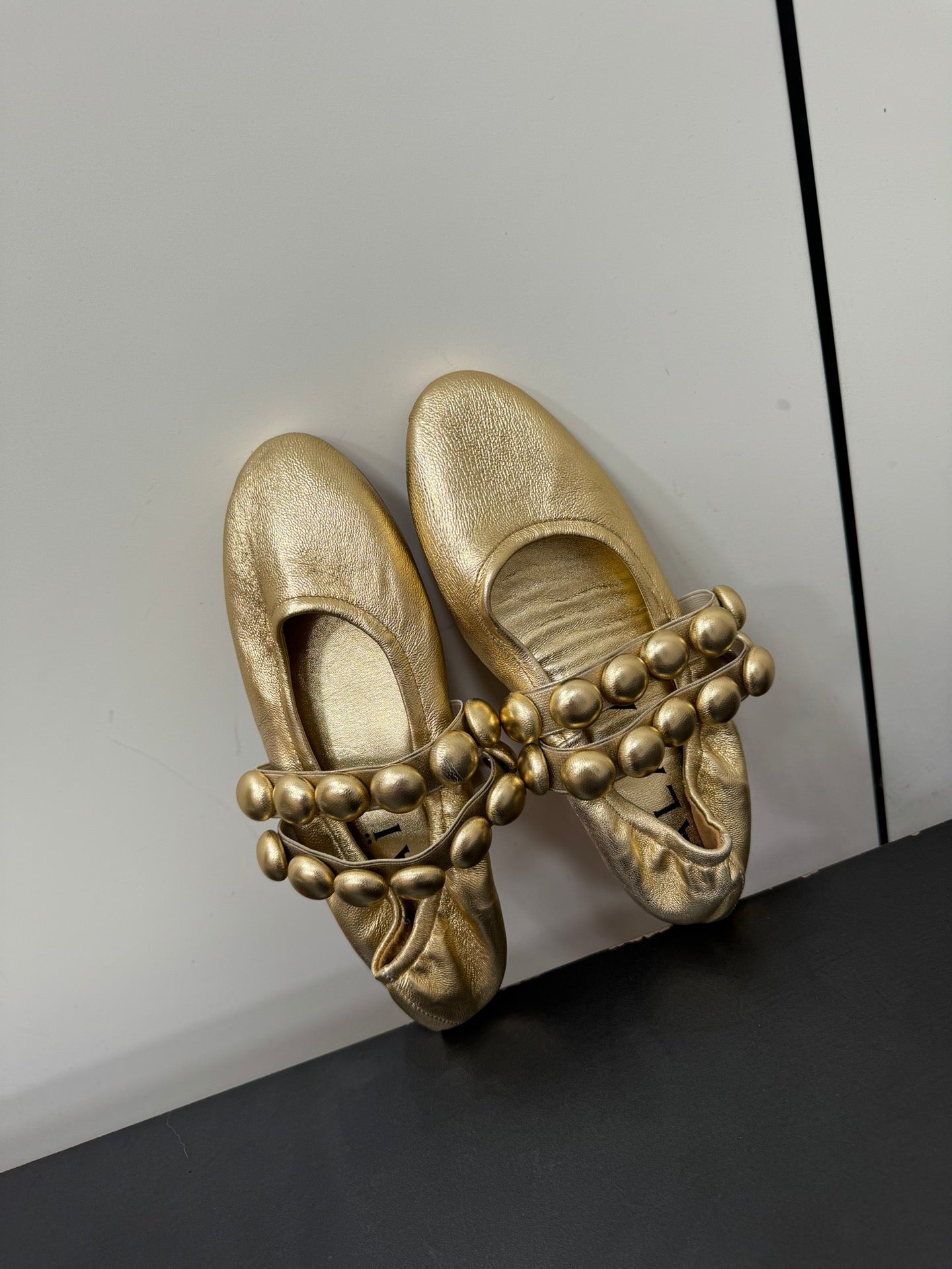 ALAIA SPHERE BALLET FLATS IN GOLDEN LAMBSKIN