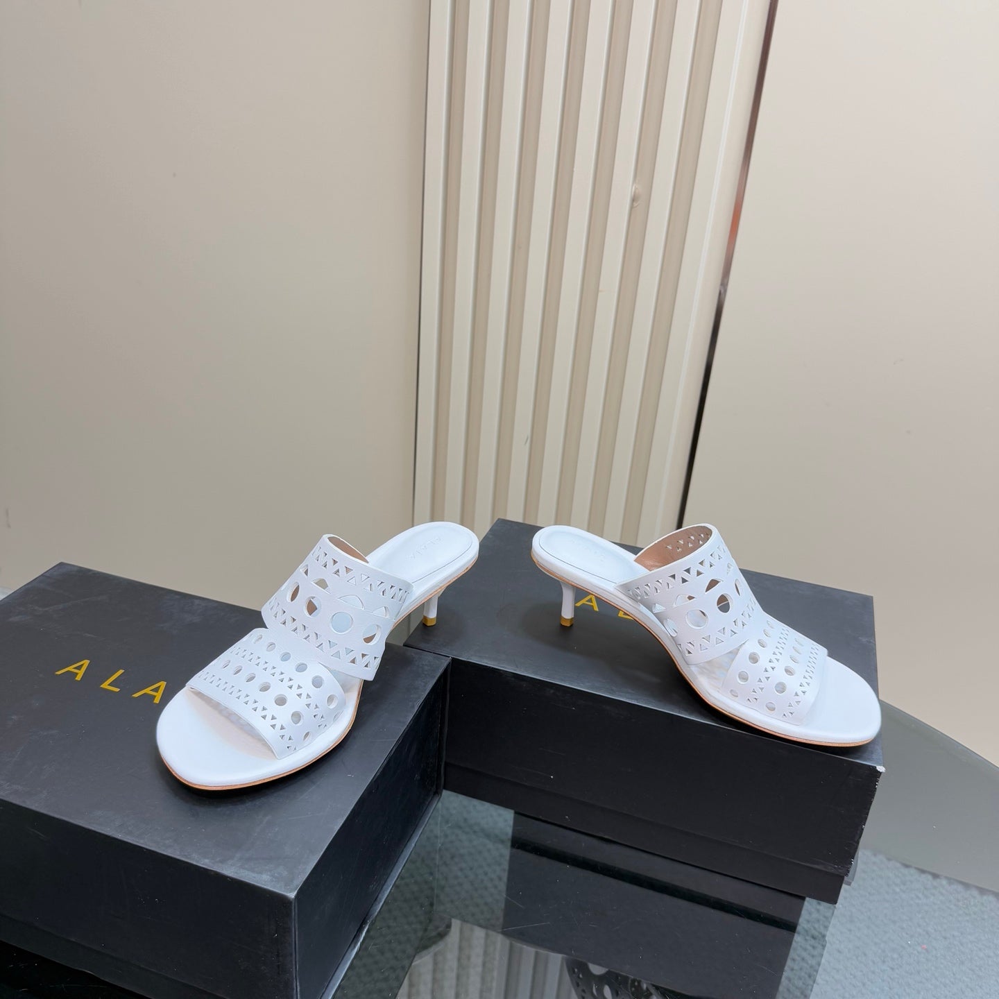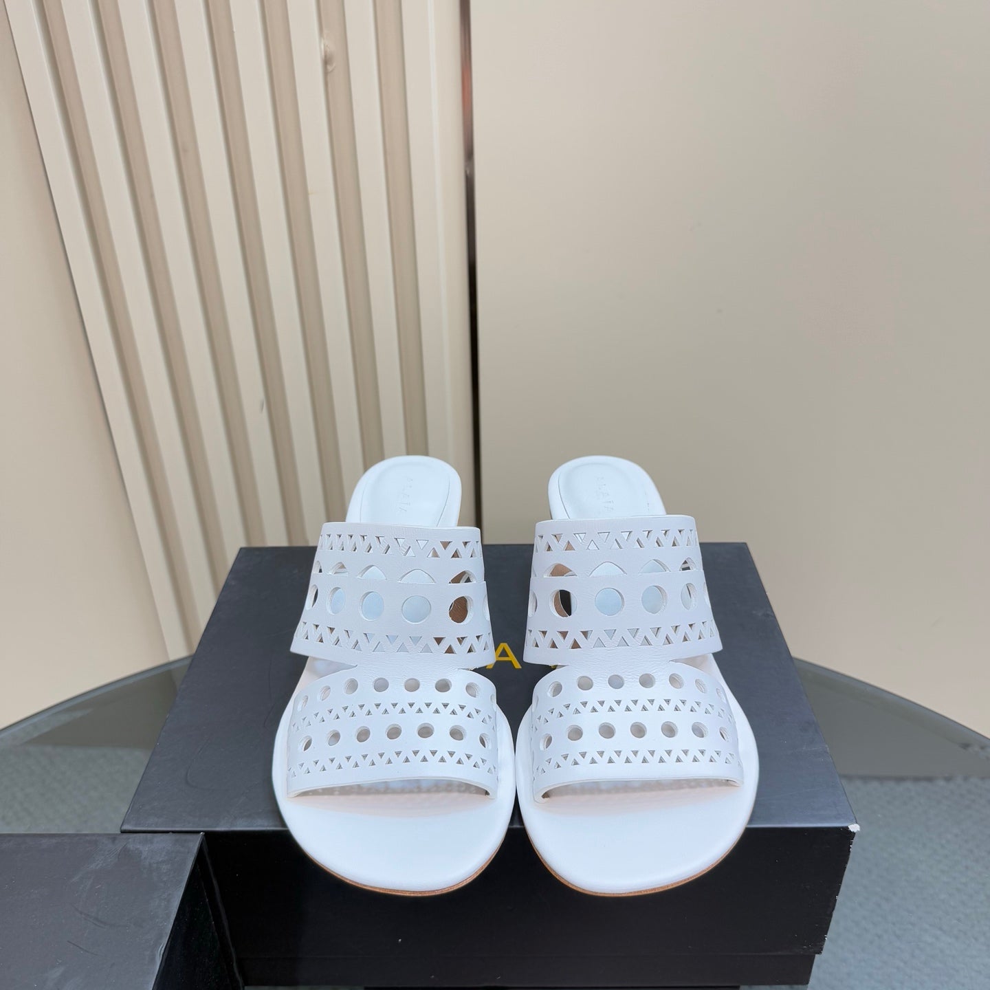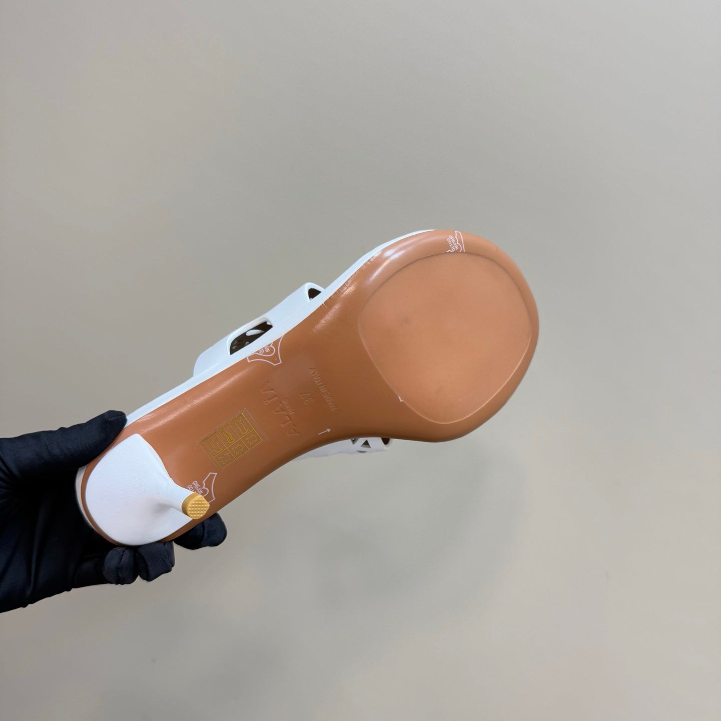 Alaia Vienne Cutout Kitten-Heel Slide Sandals White Sheepskin 299663