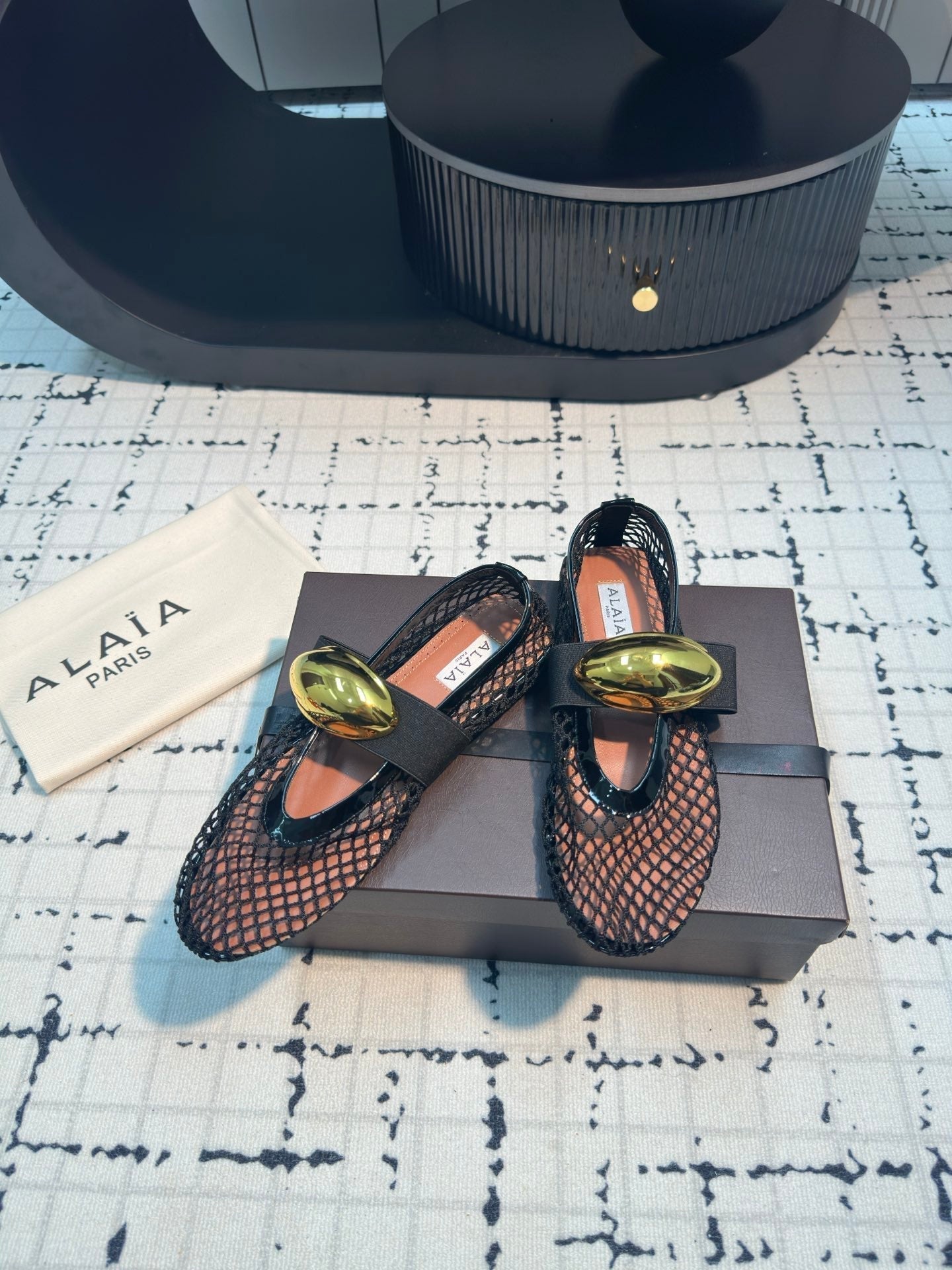 Alaila Ballet Flats In Black Mesh Fabric 895241