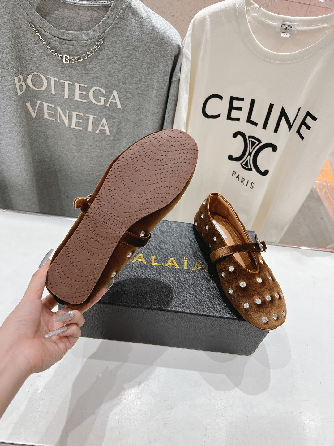 Alaila Ballet Flats In Moss Brown Velvet With Rhinestones 971998