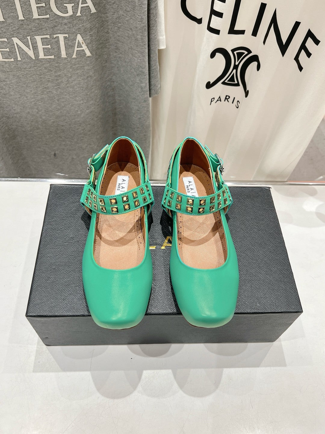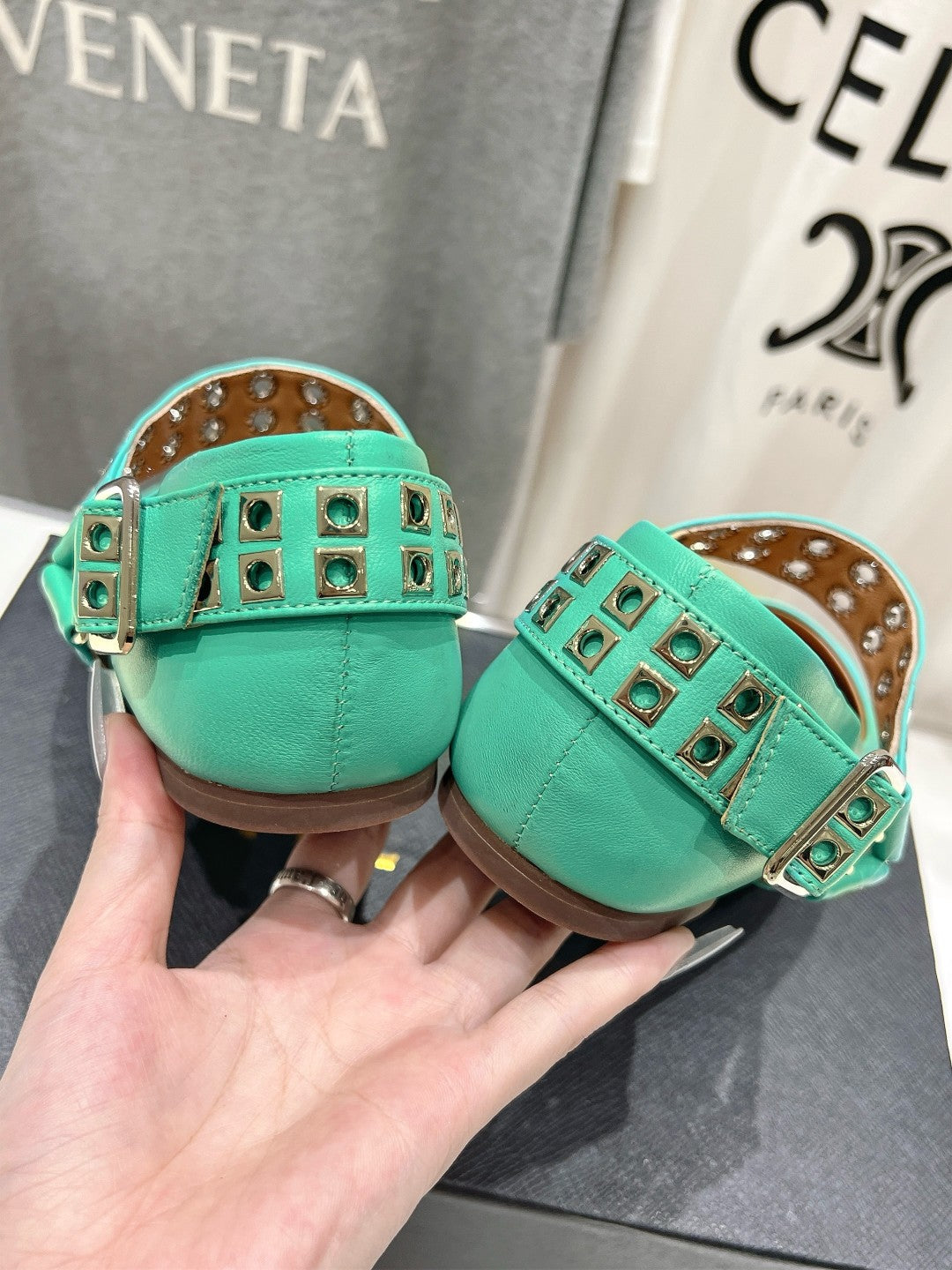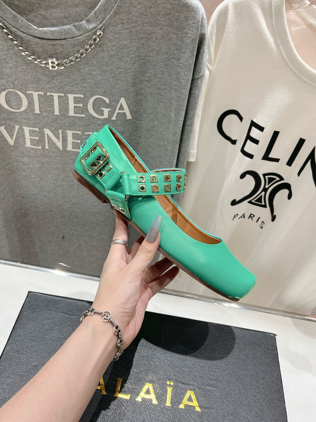 Alaila Biker Ballet Flats In Seafoam Green Cowhide 911446