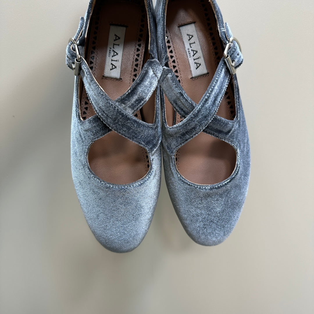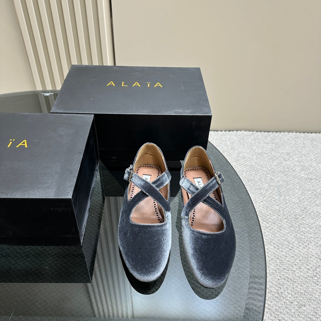 Alaila Criss Cross Ballet Flats In Dark Grey Velvet 920785