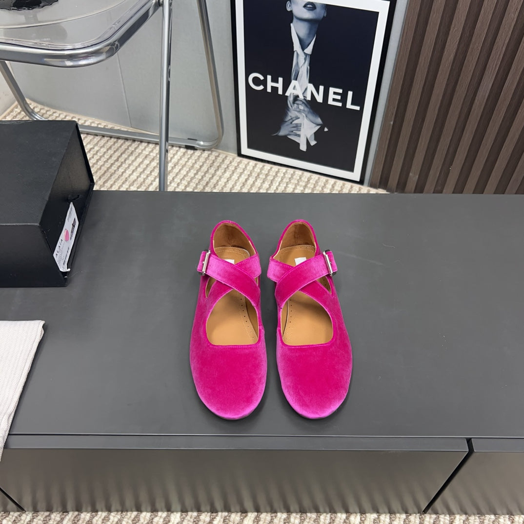 Alaila Criss Cross Ballet Flats In Deep Pink Velvet 996051