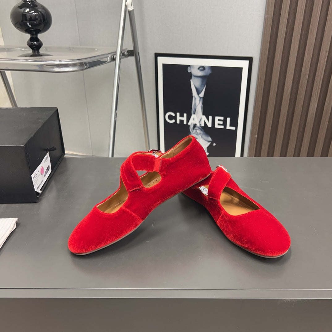 Alaila Criss Cross Ballet Flats In Red Velvet 996049
