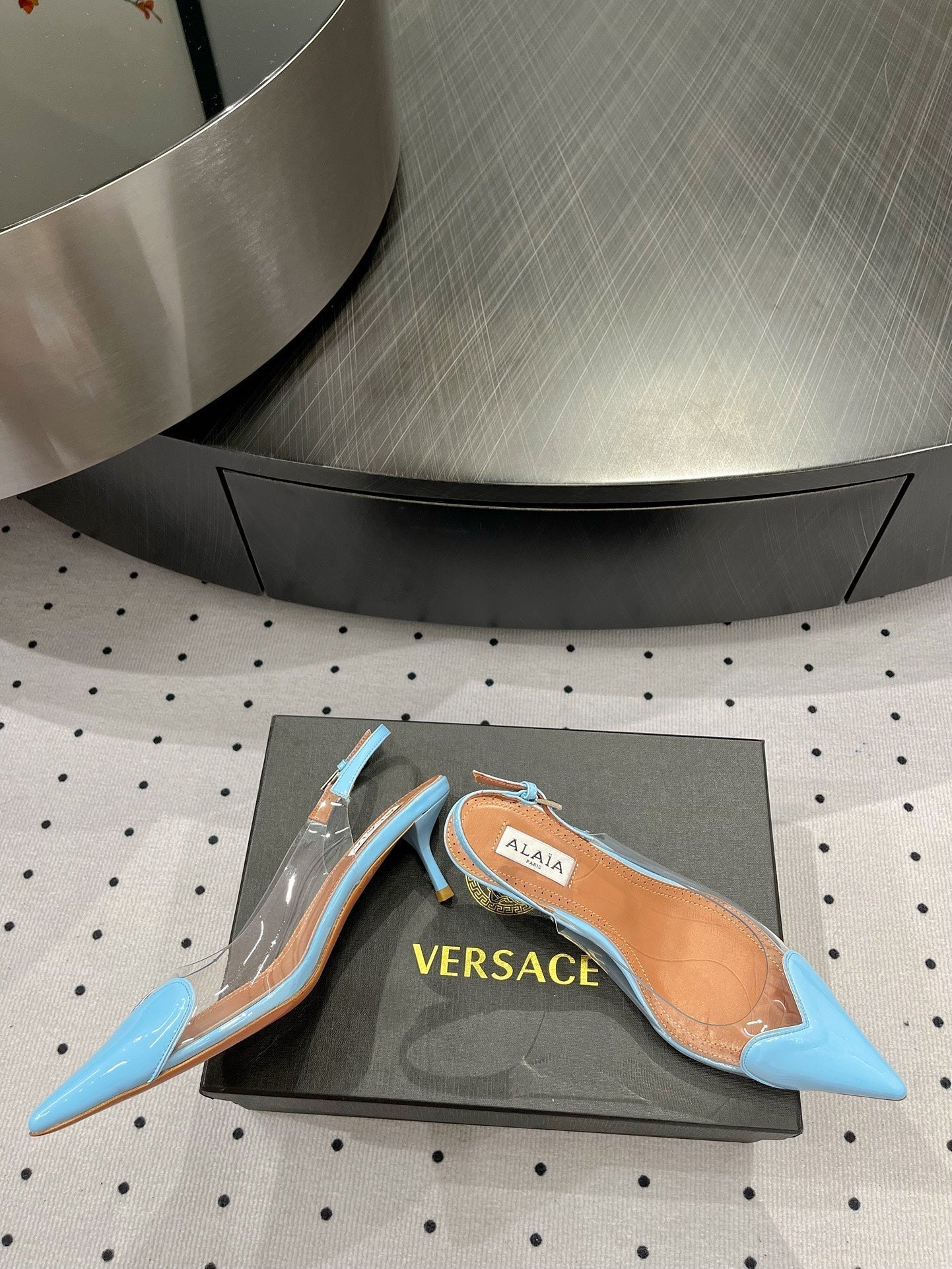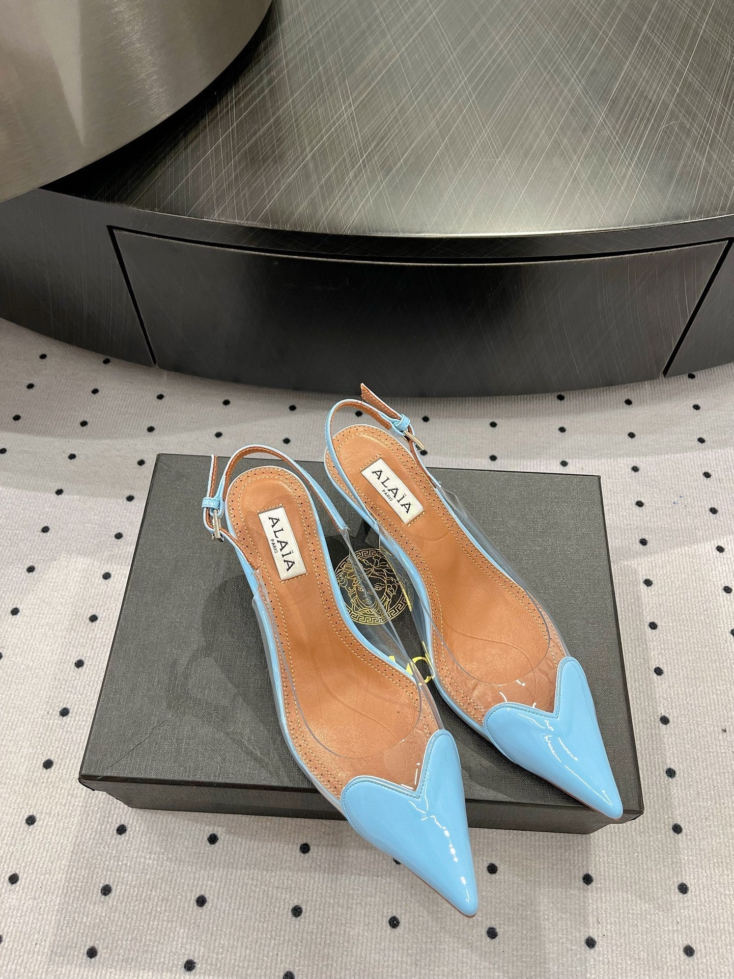 Alaila Le Cœur Slingbacks 60mm In Could Blue Glossy Lambskin 954835