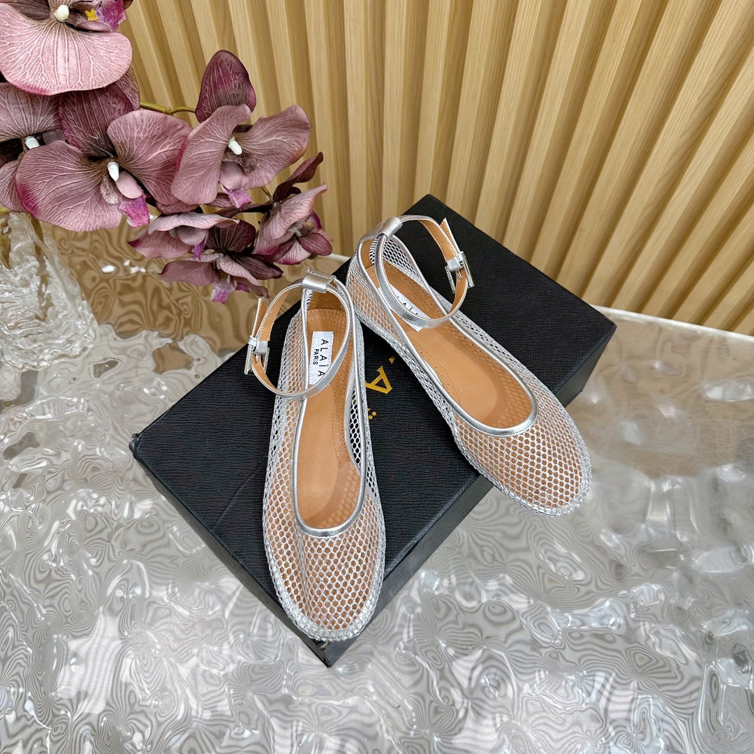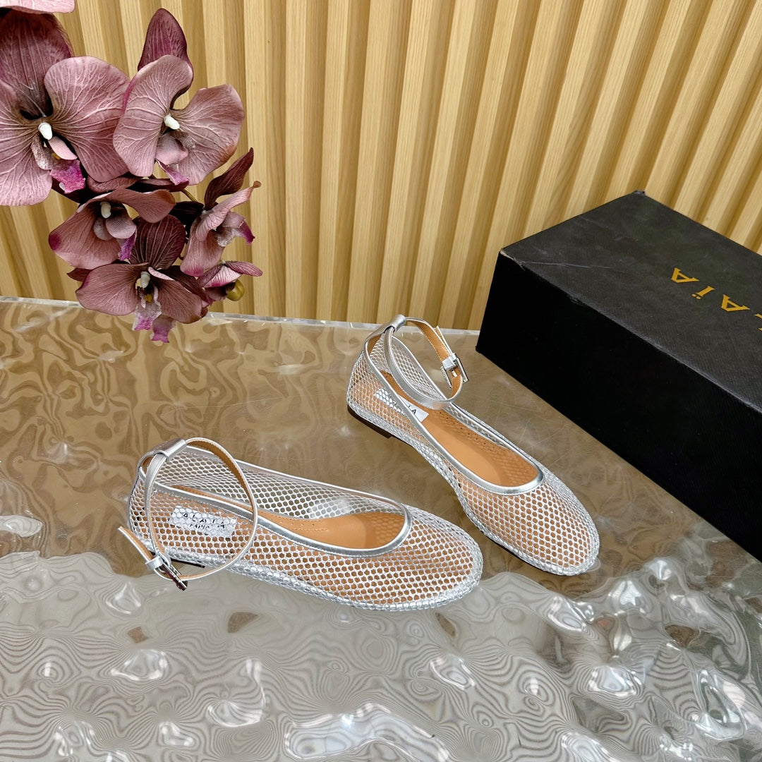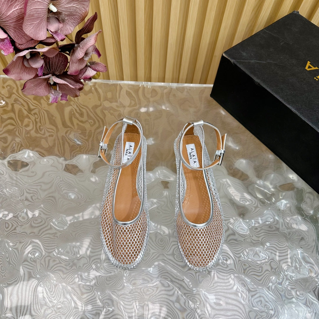 Alaila Mary Jane In Silver Mesh Fabric 103024