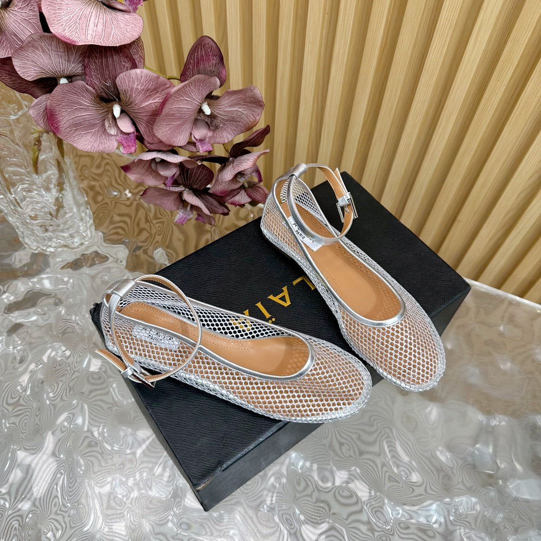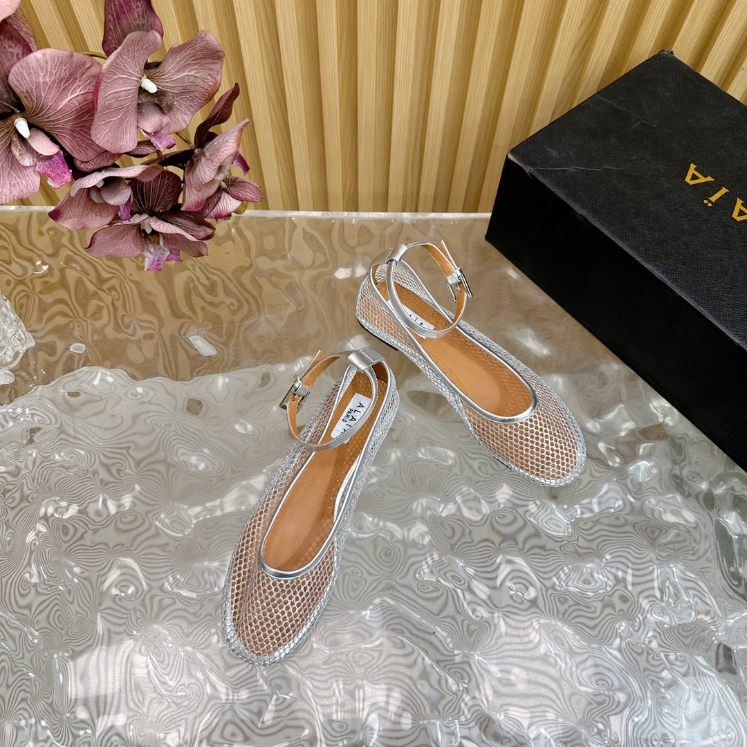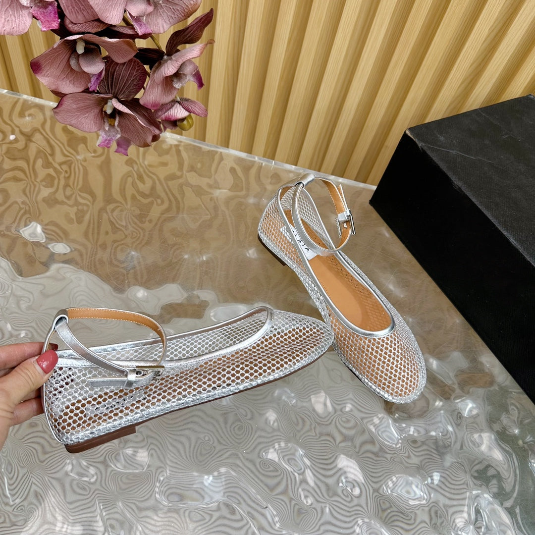 Alaila Mary Jane In Silver Mesh Fabric 103024