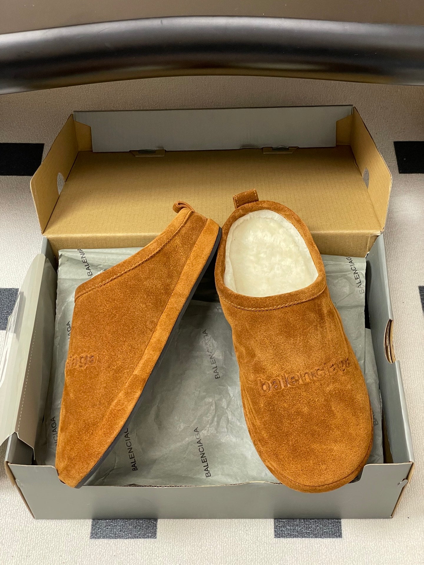 Balenciaga Mule Slip-On Caramel Brown Suede Wool 534531