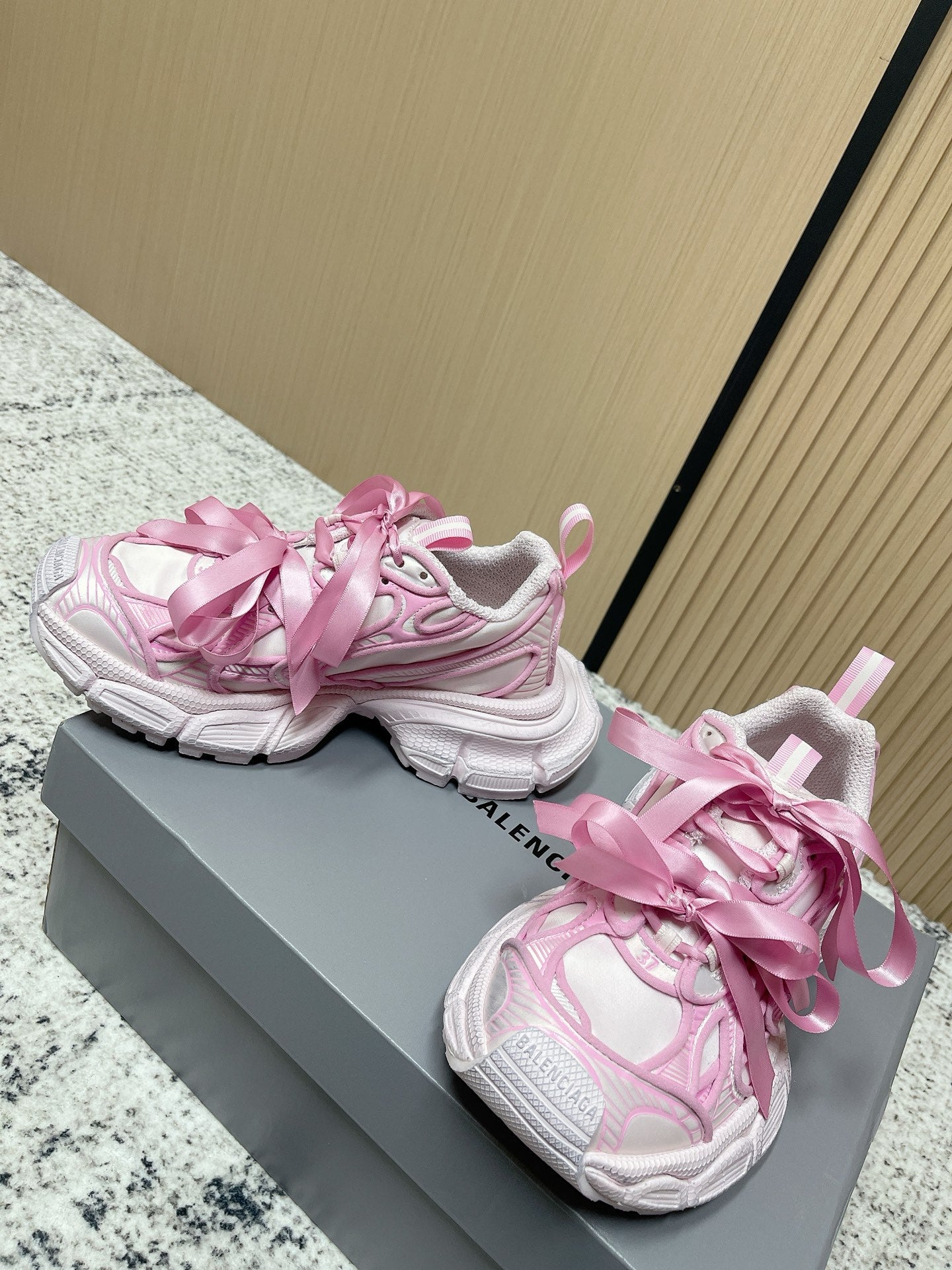 Balenciaga Sneaker Mesh Lace-up Light Pink Fabric 534184