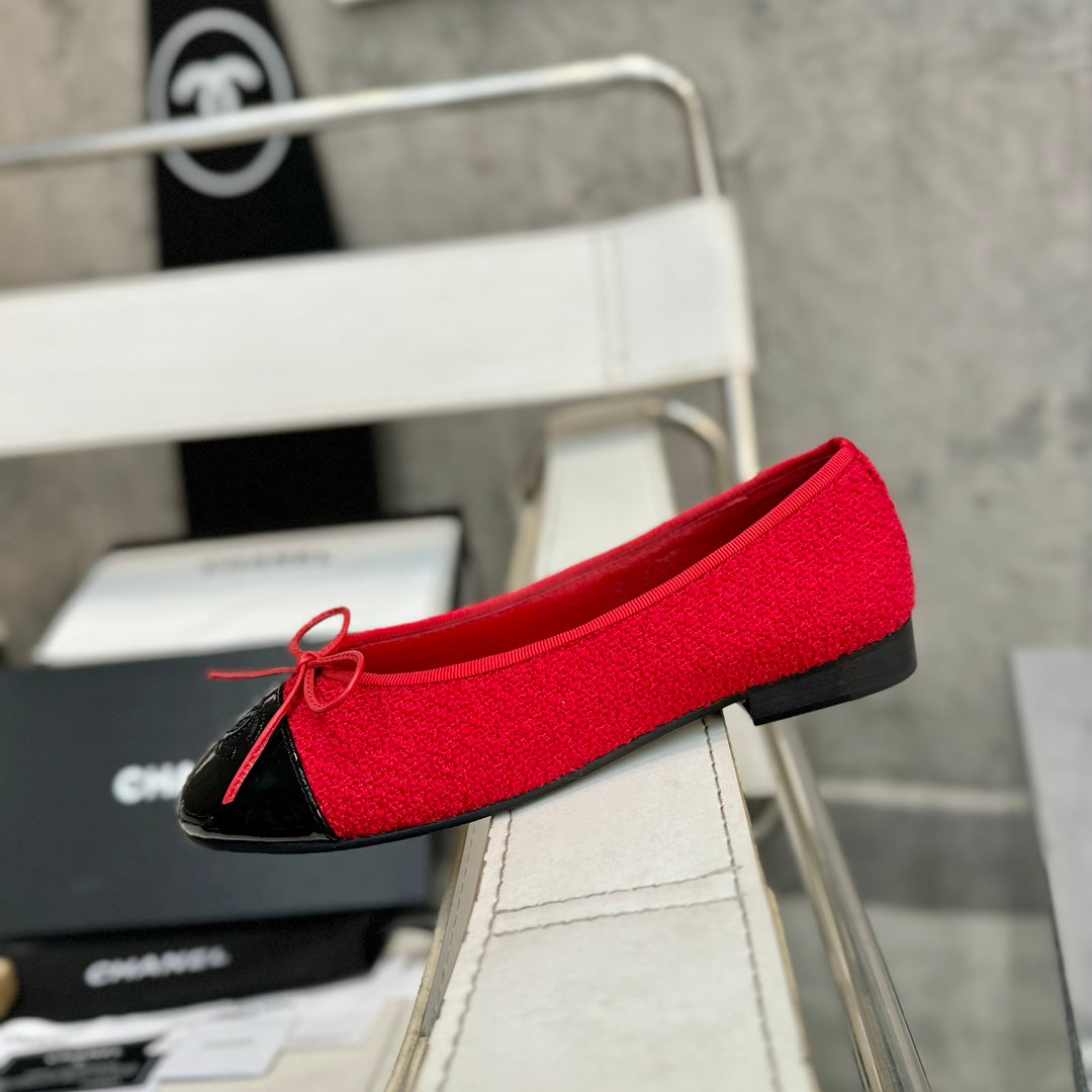 ballet flat red tweed black patent calfskin