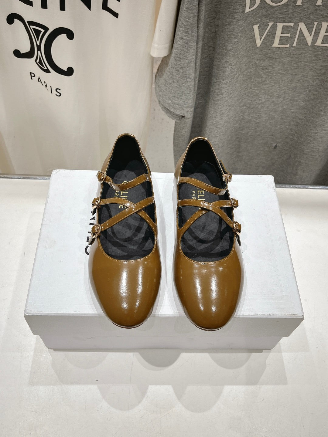 BALLET FLAT WITH CROSSOVER STRAP IN SEPIA BROWN LAMBSKIN