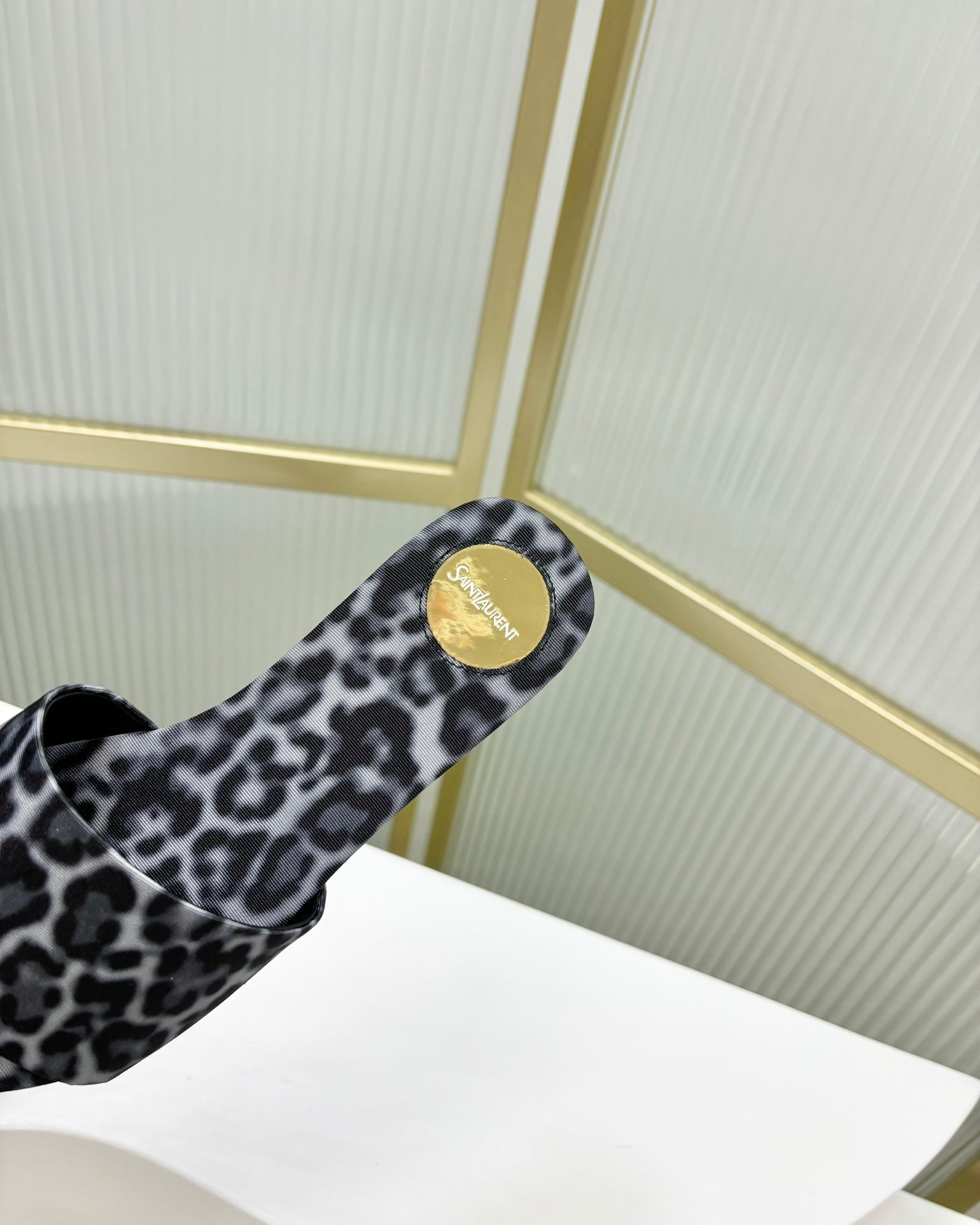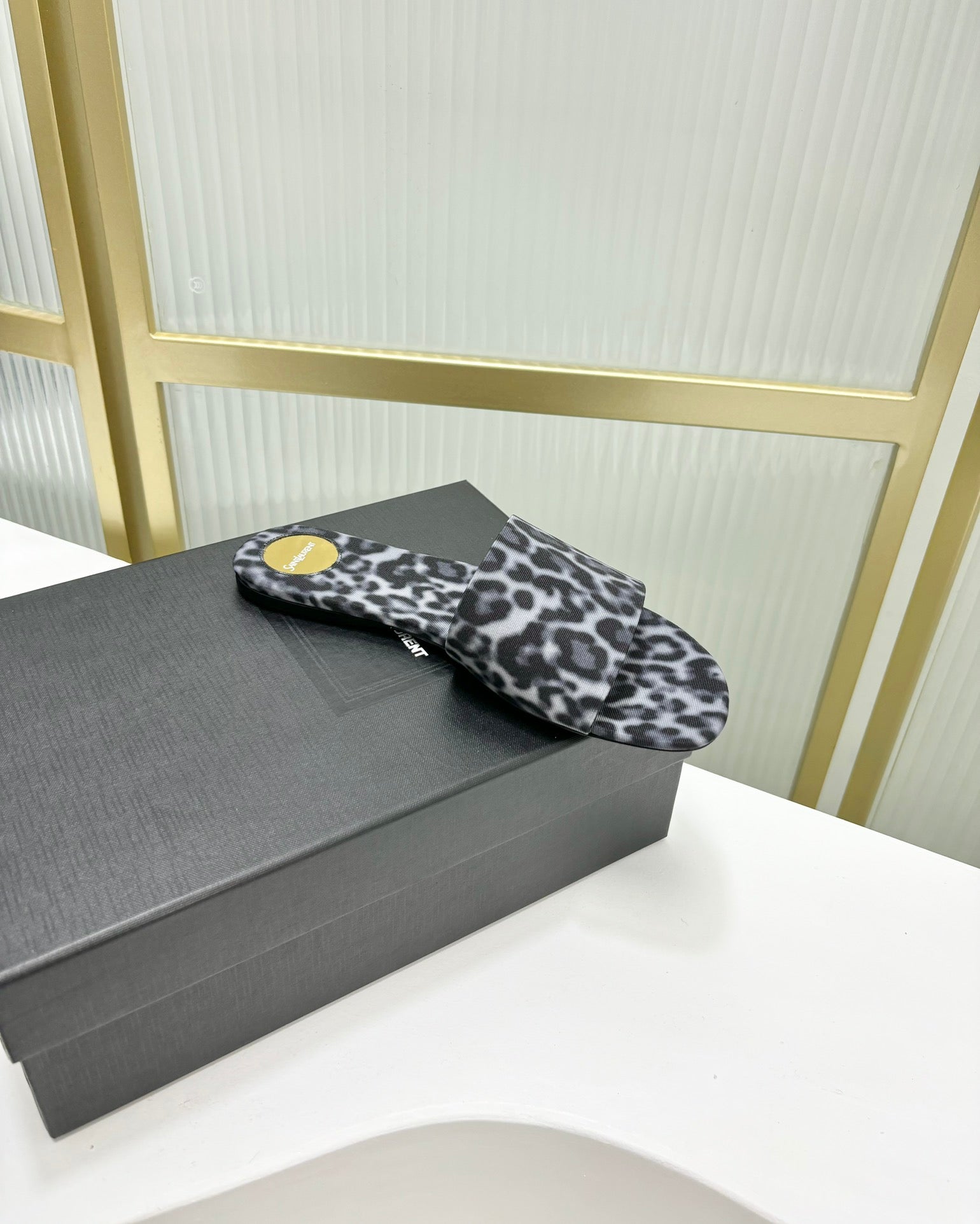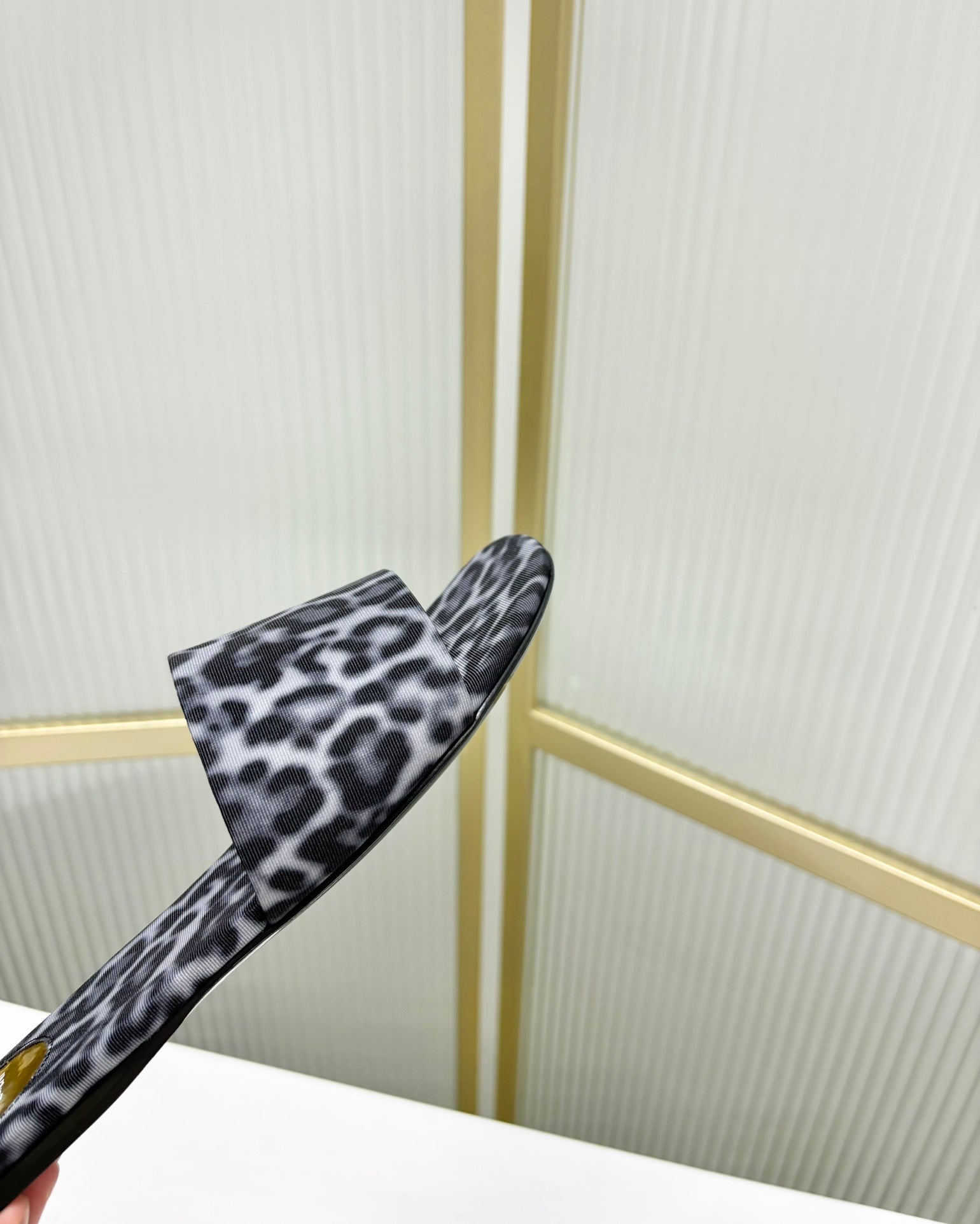 CARLYLE SLIDES IN LEOPARD GROSGRAIN BLACK WHITE