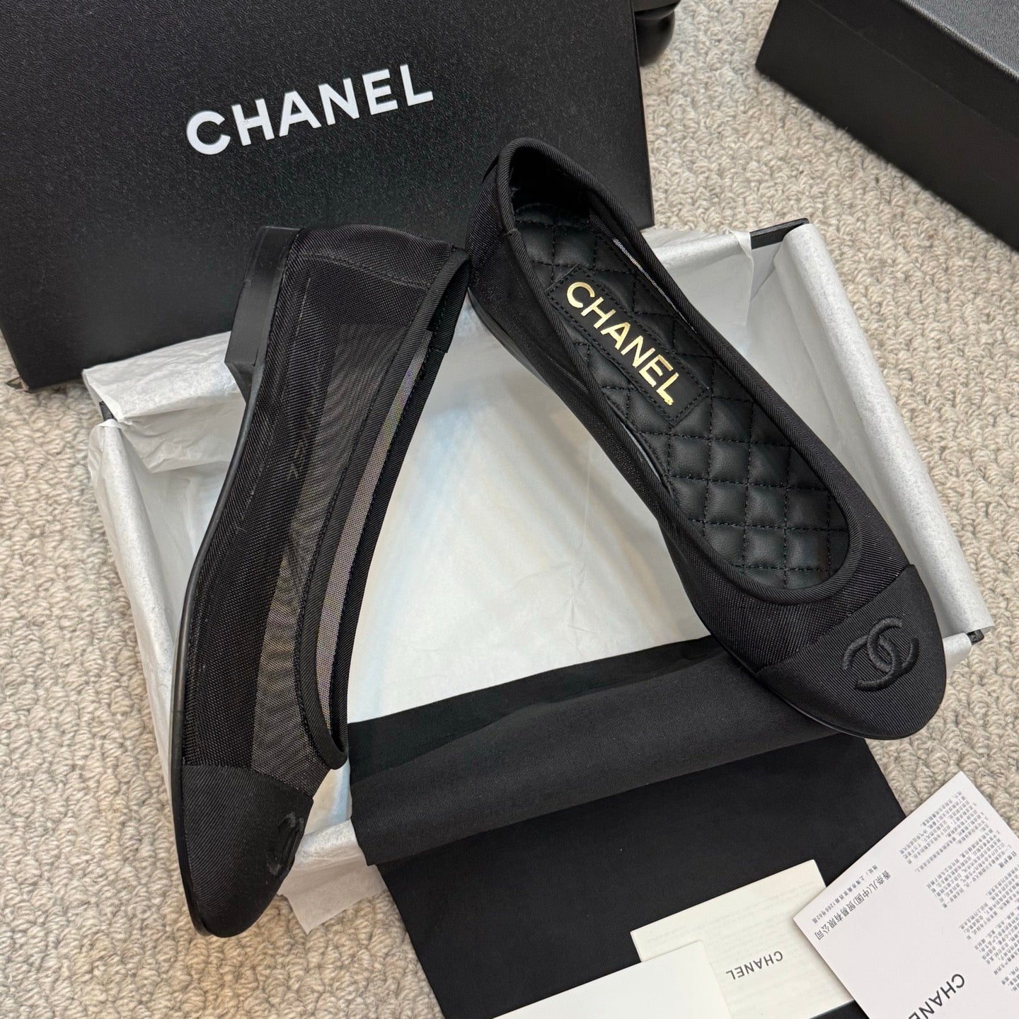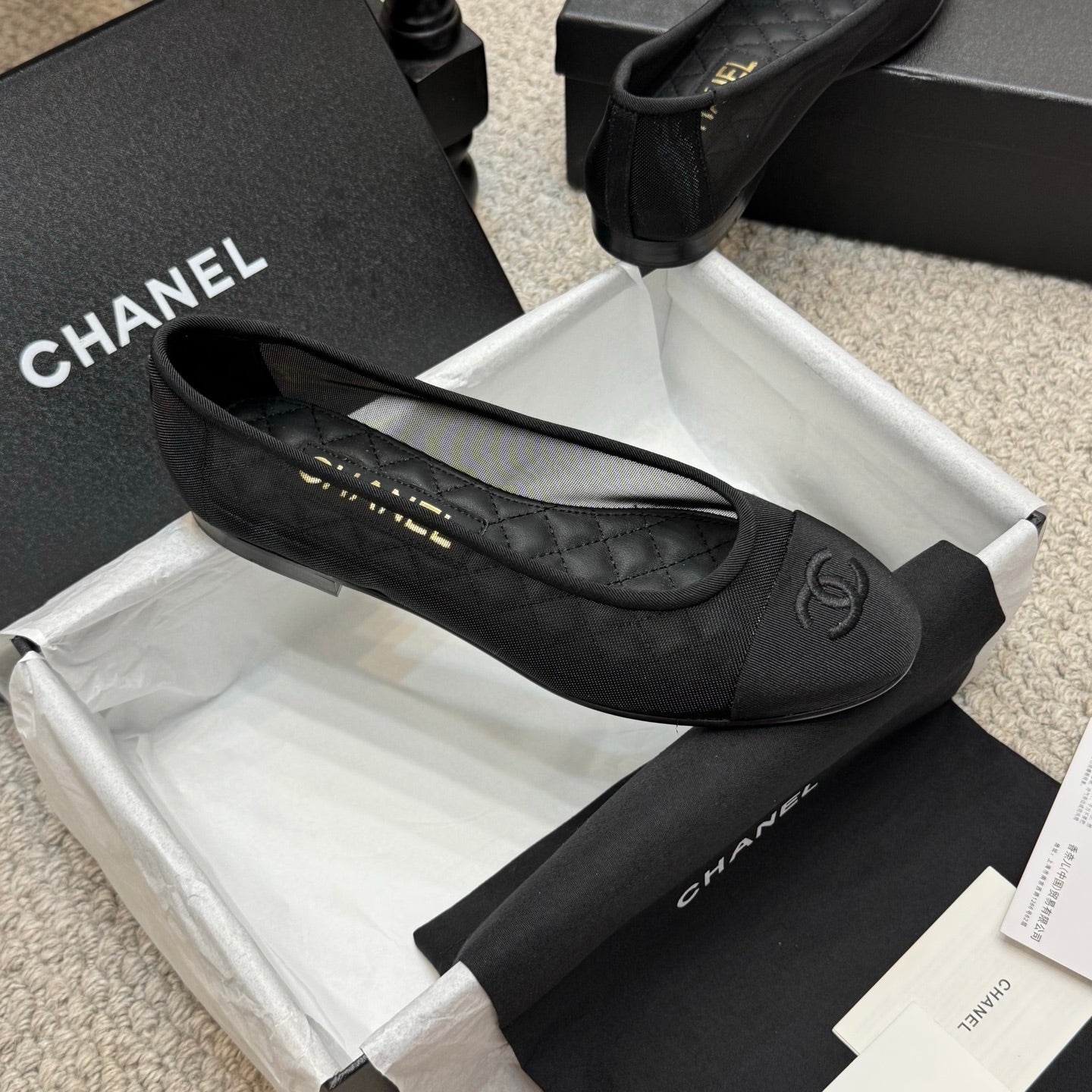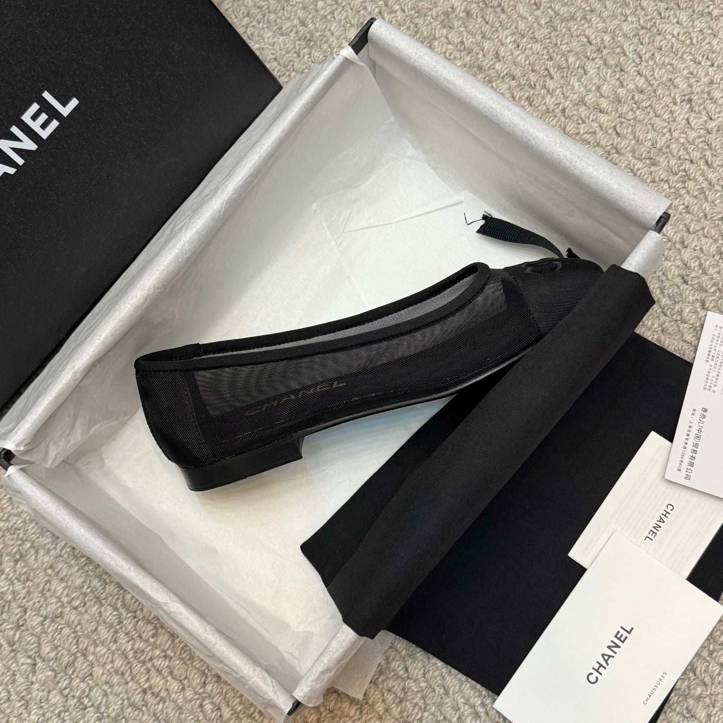 CC 25p Ballet Flat Black Mesh Fabric Grosgrain