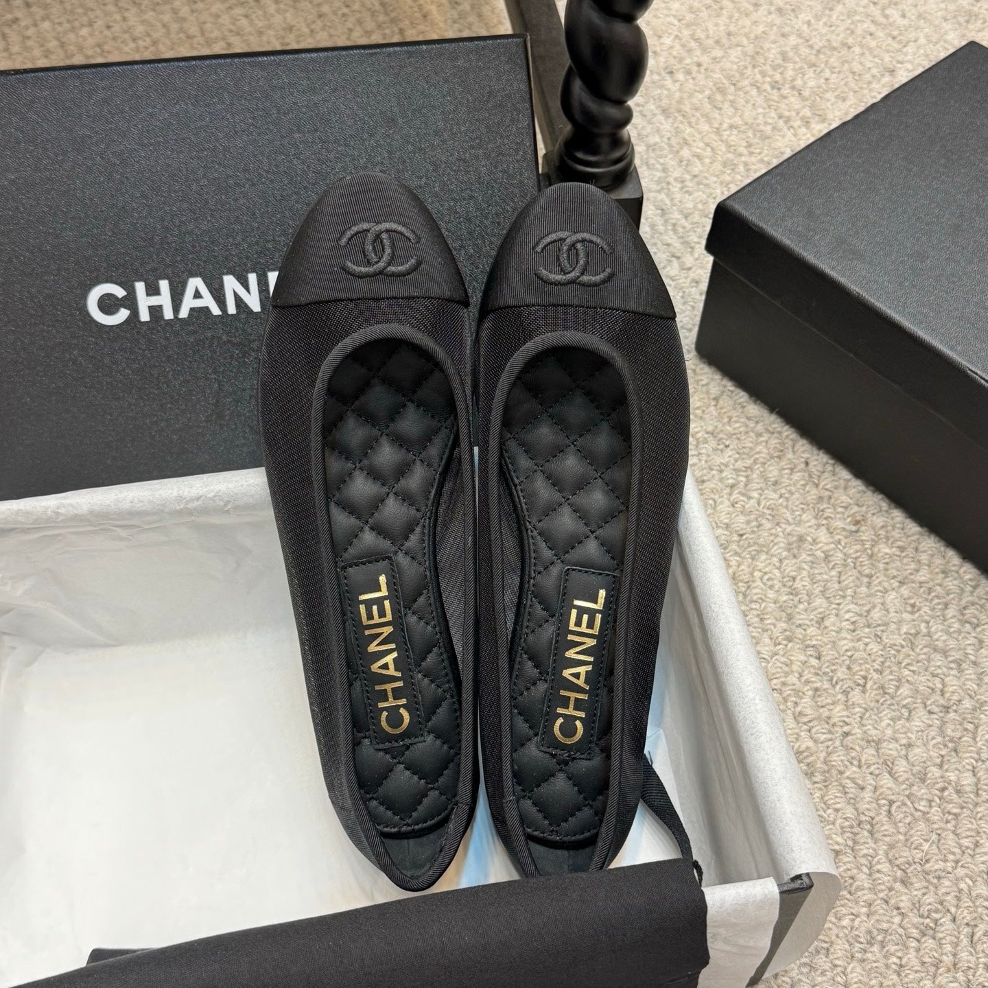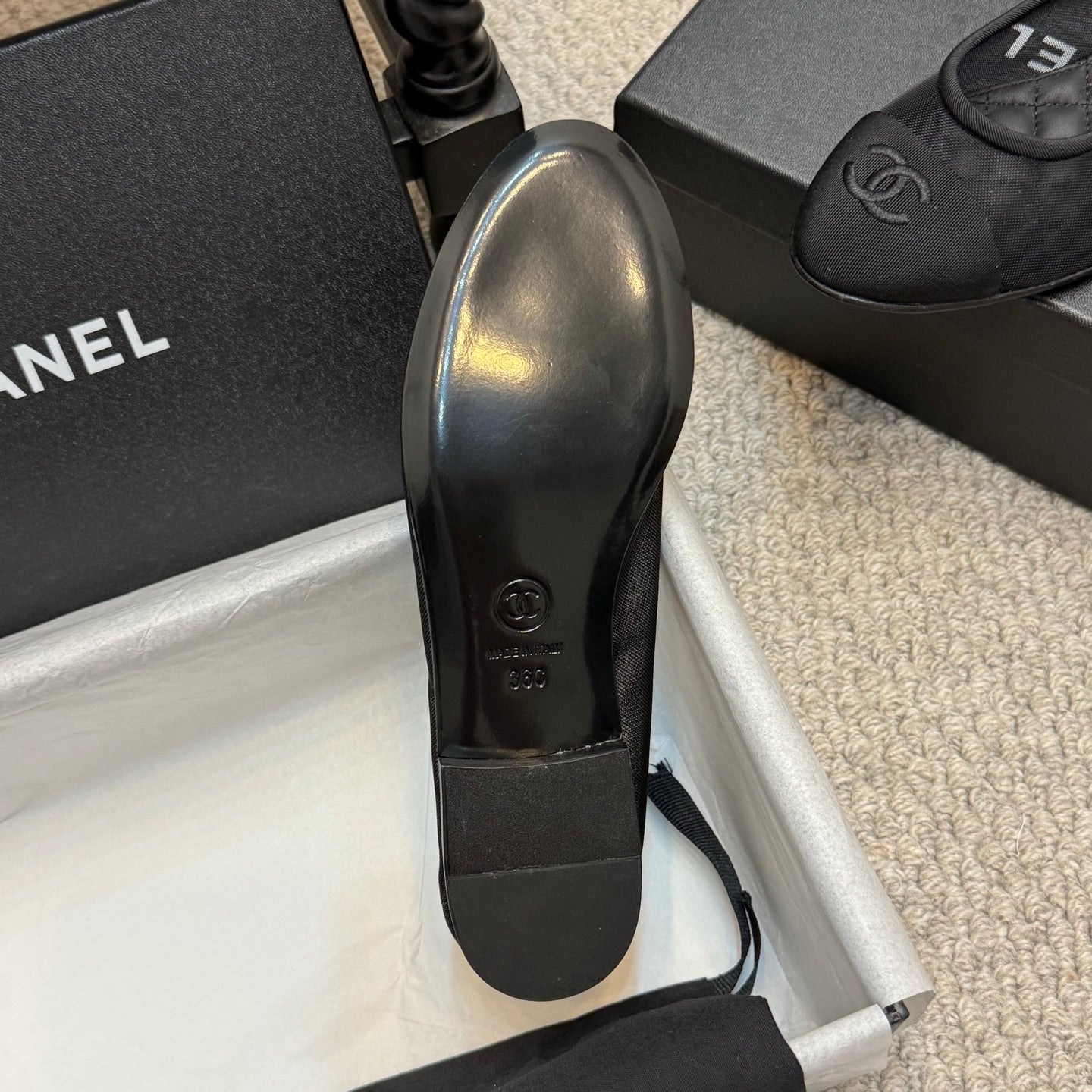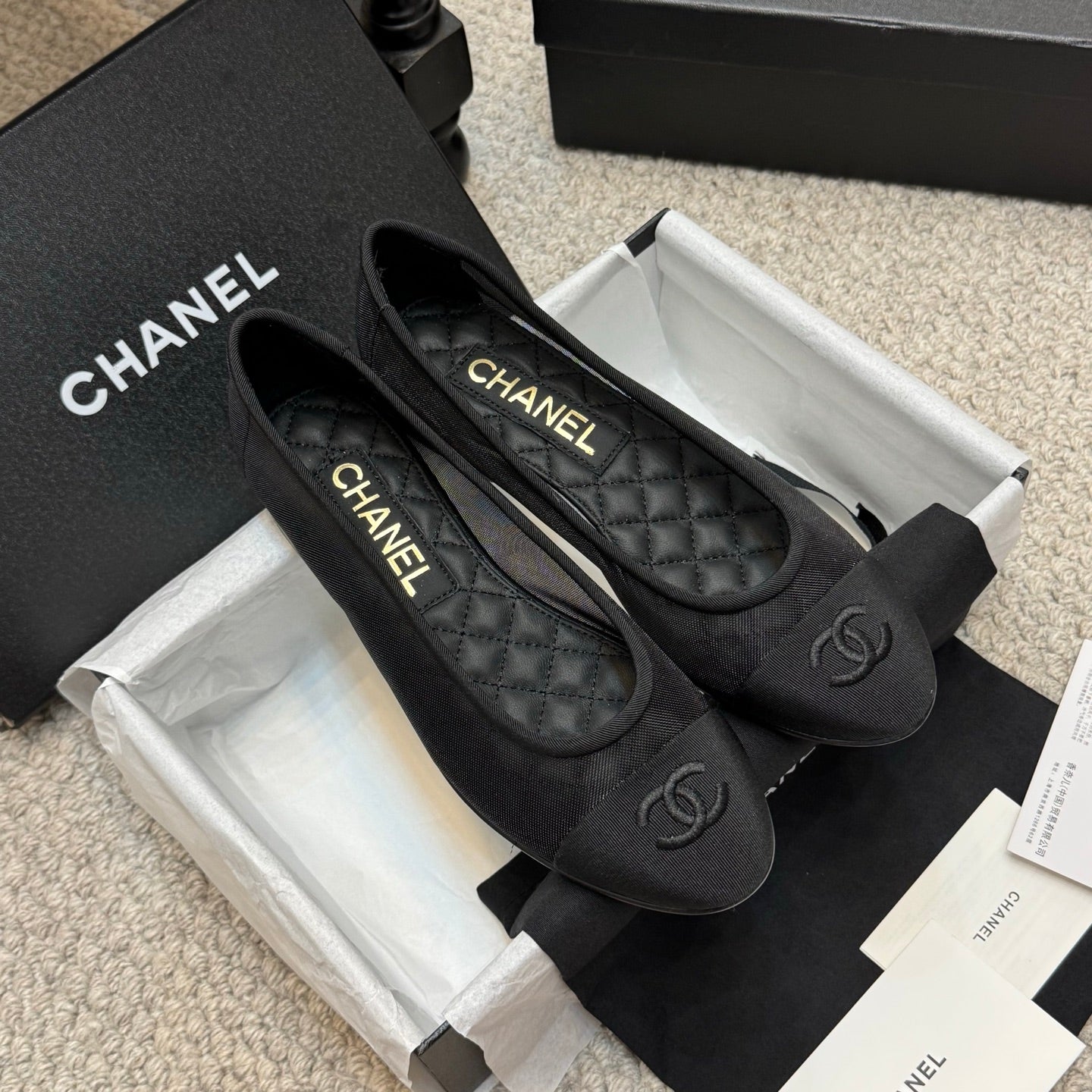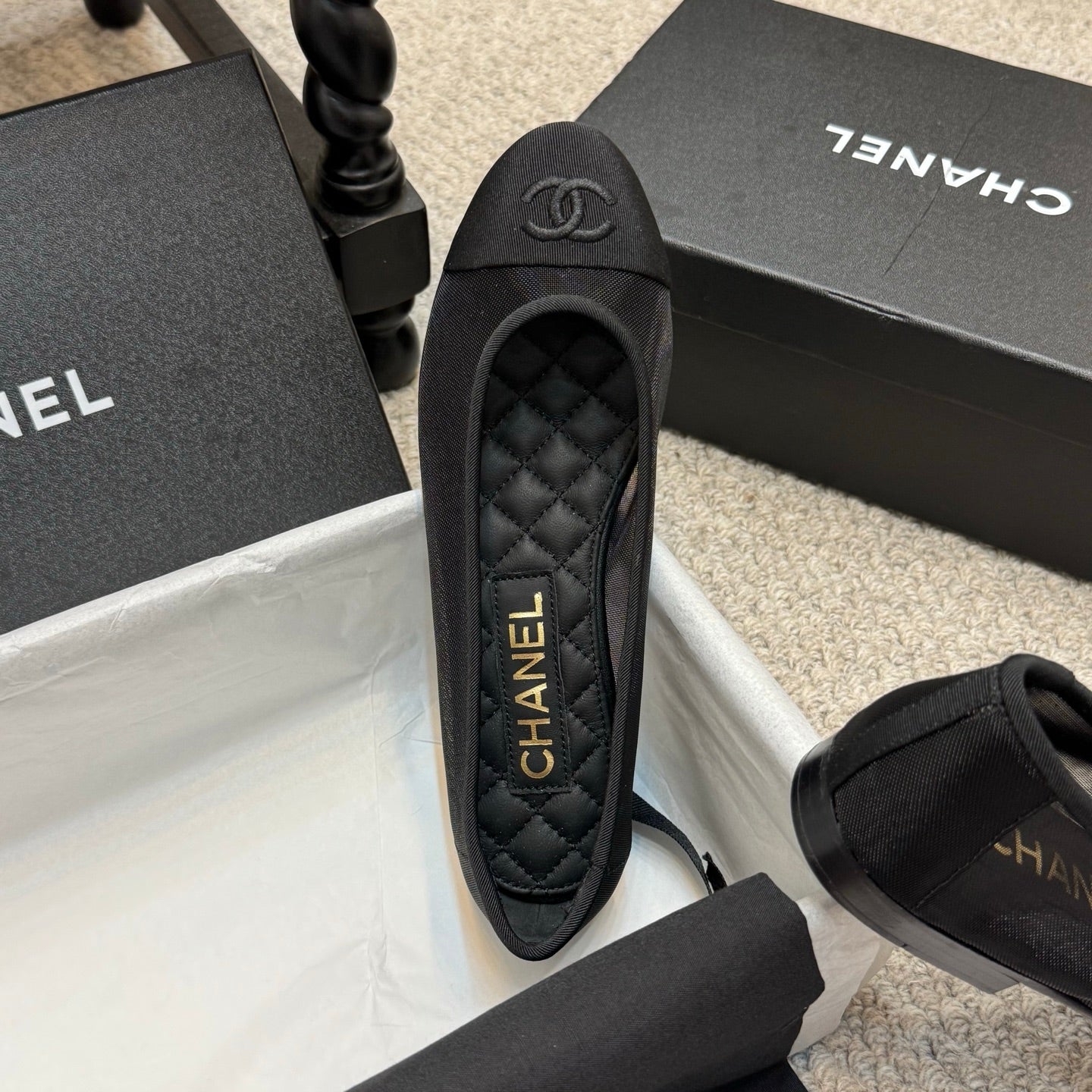 CC 25p Ballet Flat Black Mesh Fabric Grosgrain