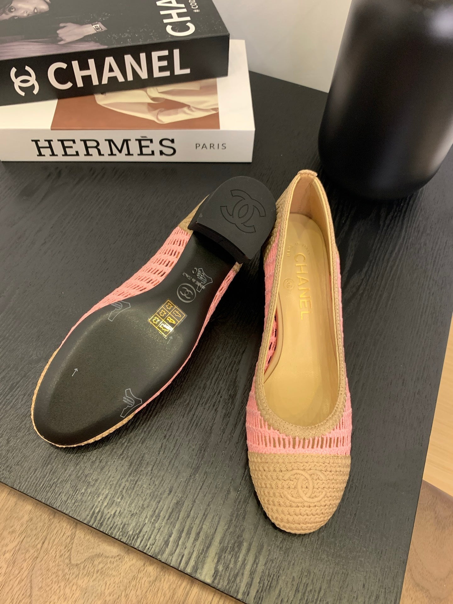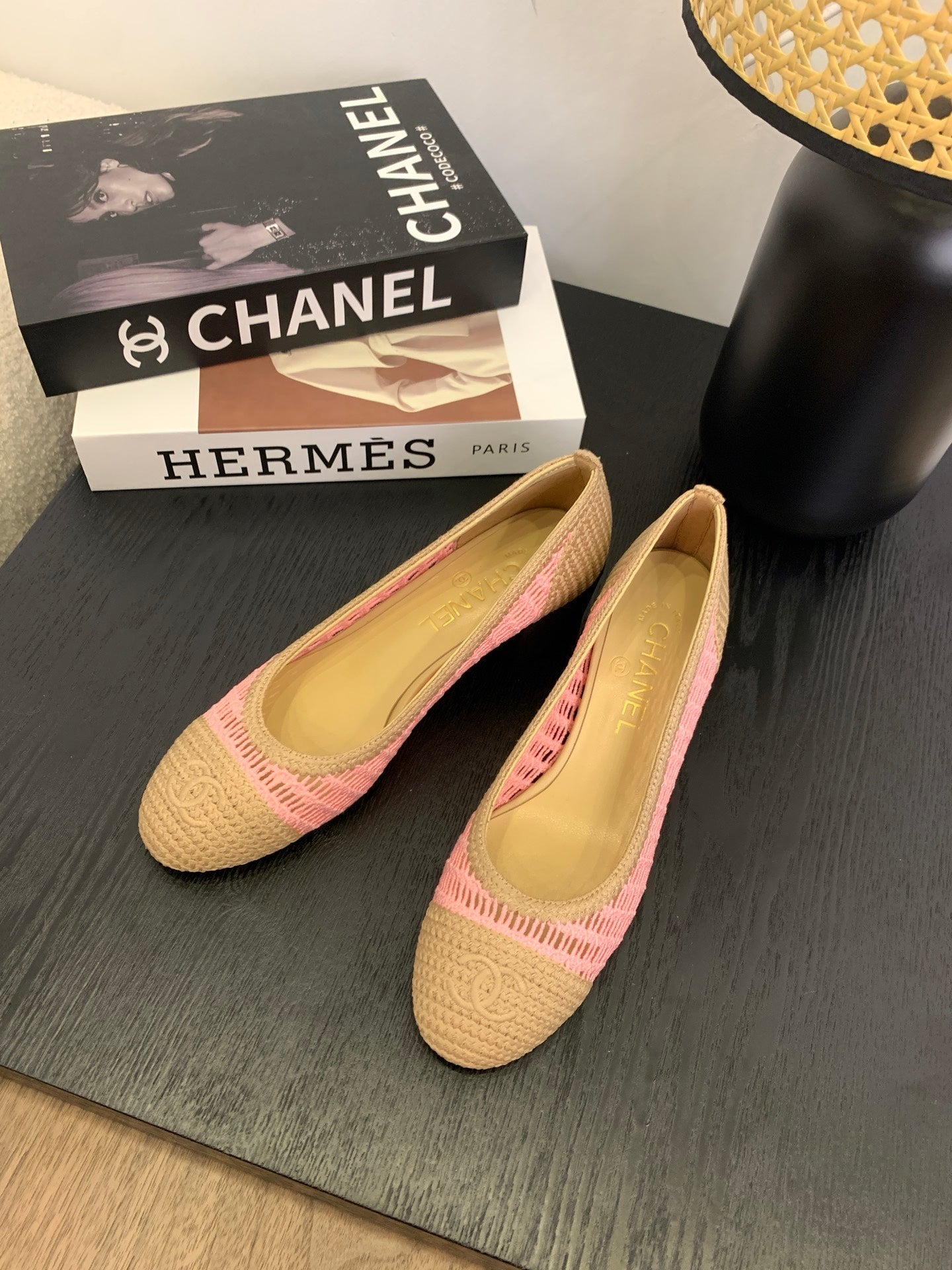 CC 25p Ballet Heel 50mm Pink Beige Raffia