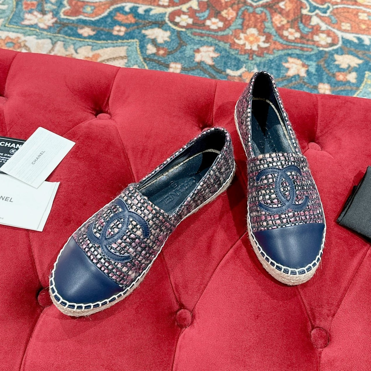 cc espadrilles dark blue blended fabrics calfskin