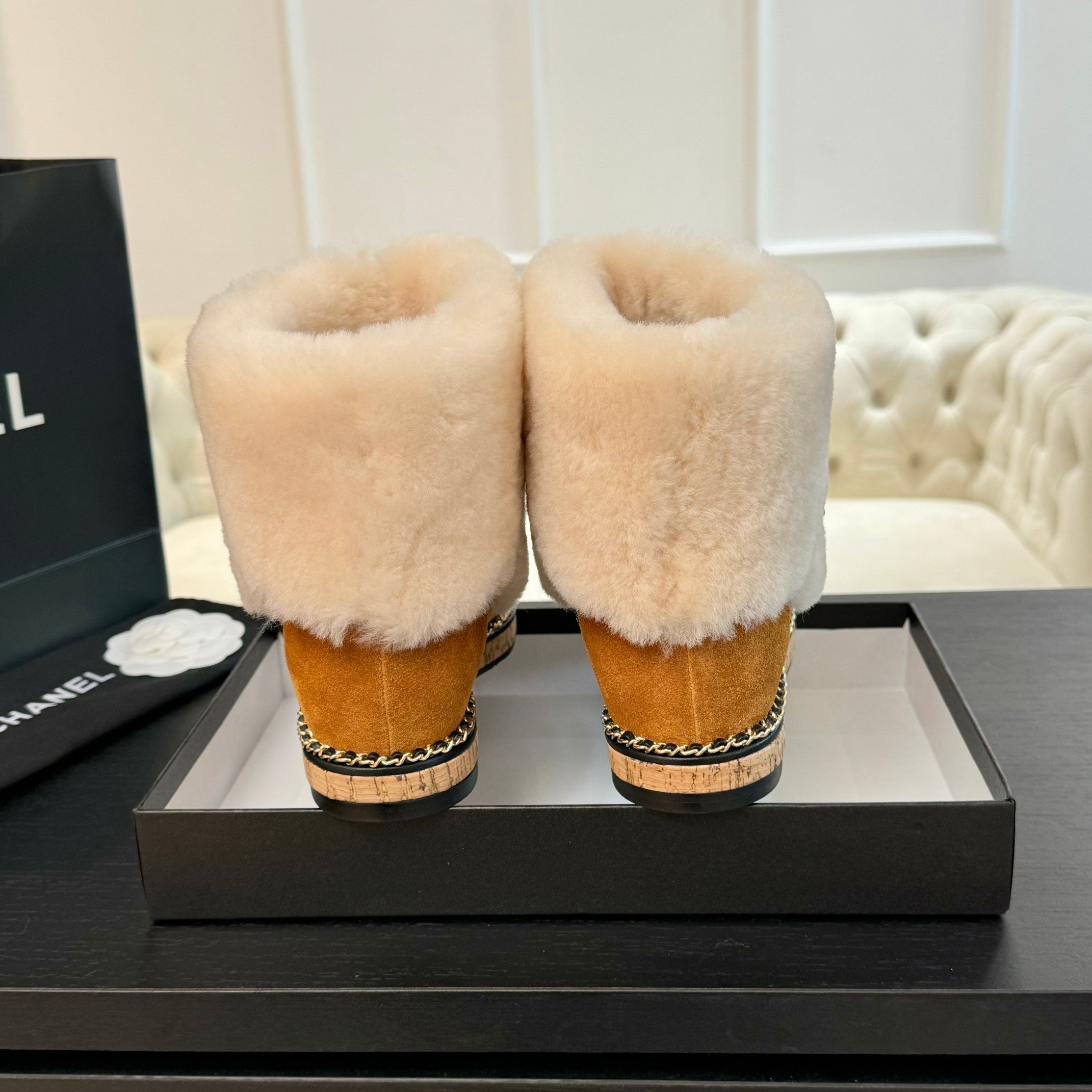 CC Flat Ankle Boots Yellow Orange Suede And Fleece