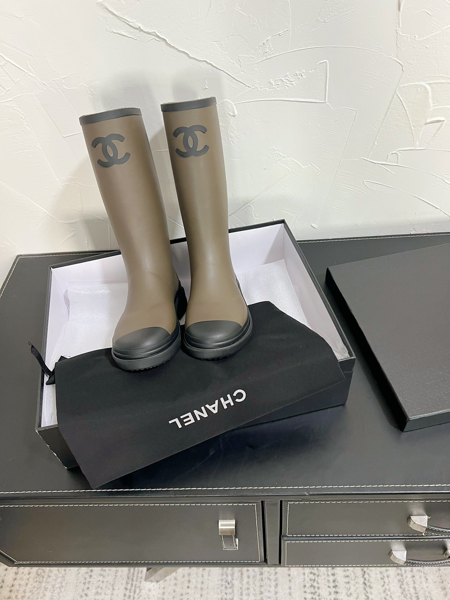 CC High Boots Moss Green Khaki Mix Black Natural Rubber 949645