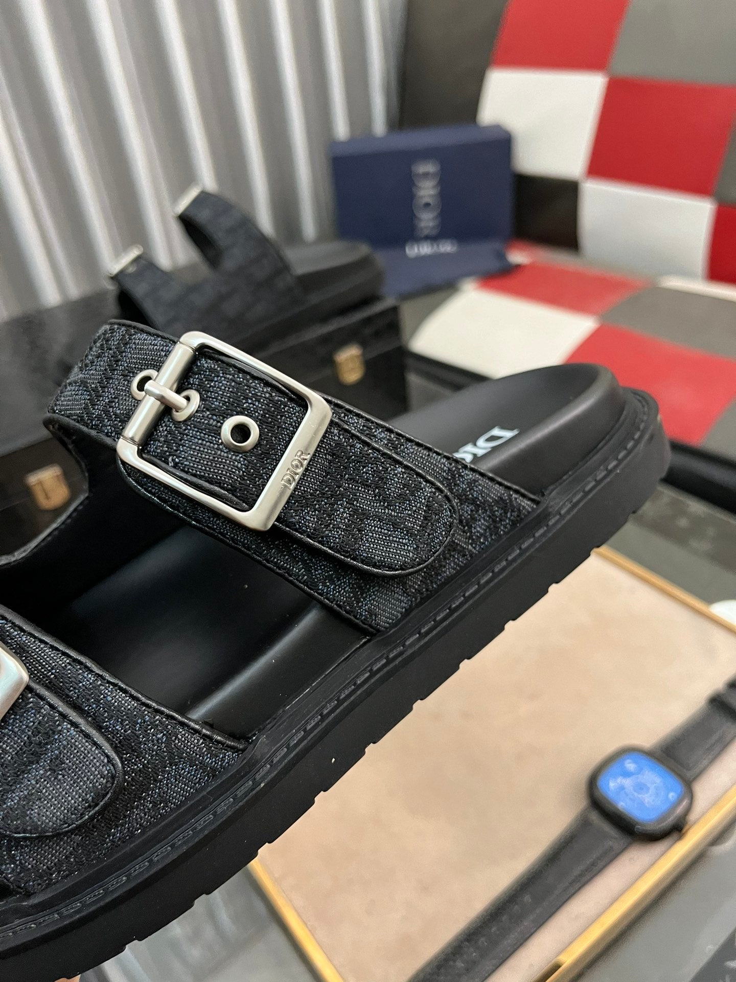 CD AQUA BUCKLE SANDAL BLACK JACQUARD