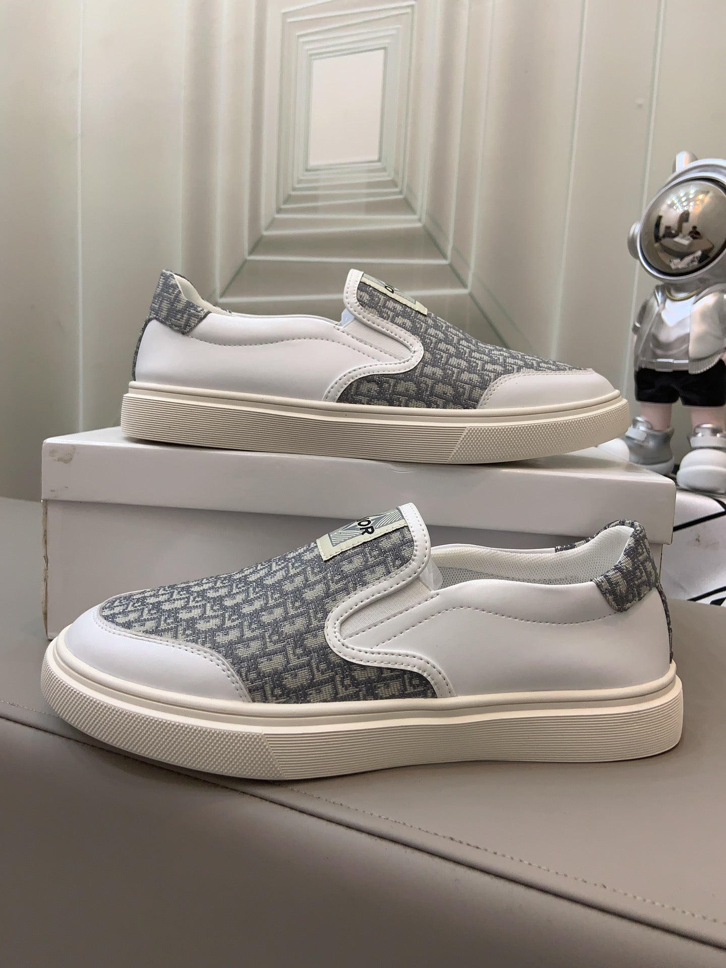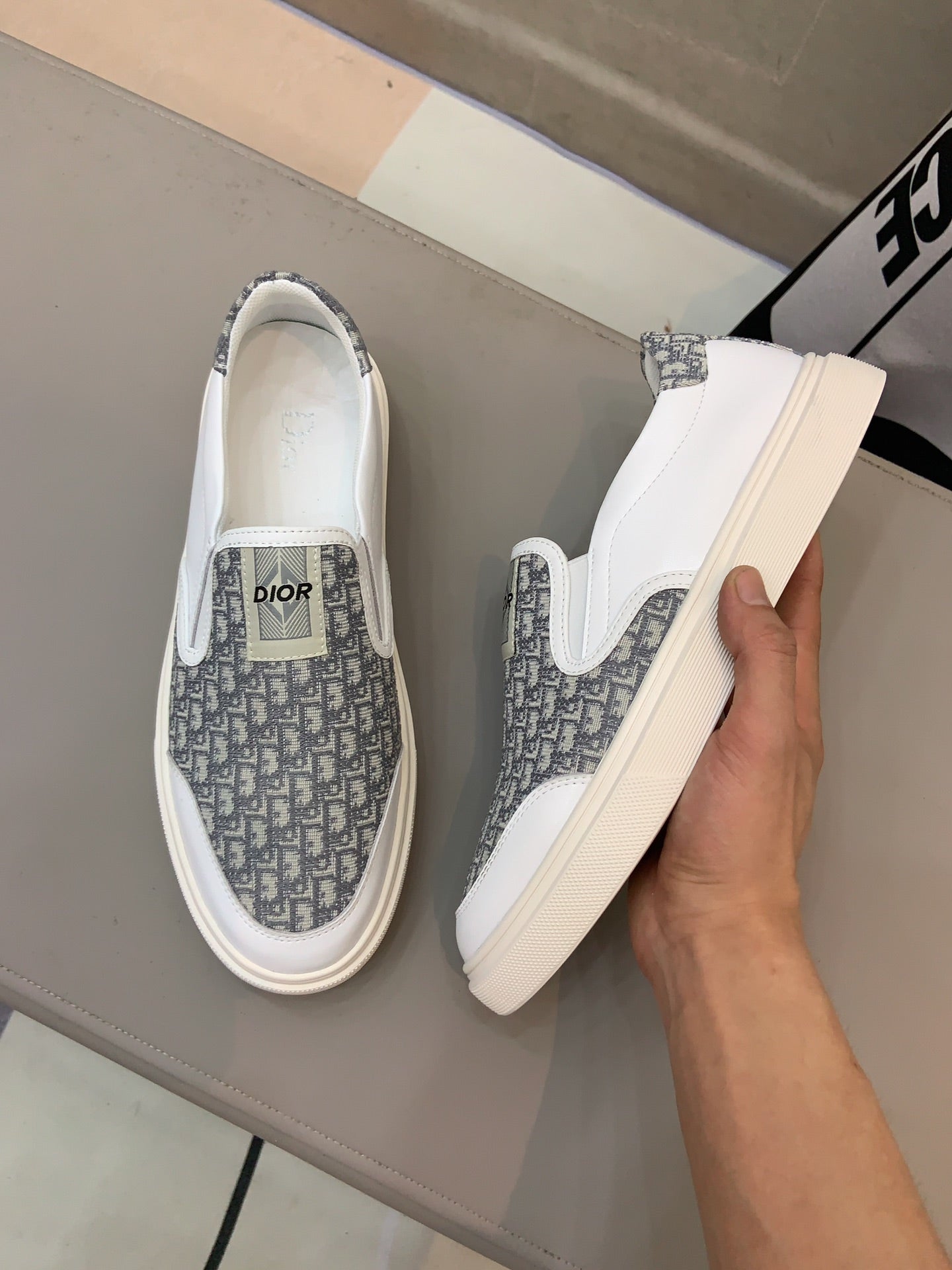 CD B23 SLIP ON WHITE CALFSKIN AND BEIGE FABRIC