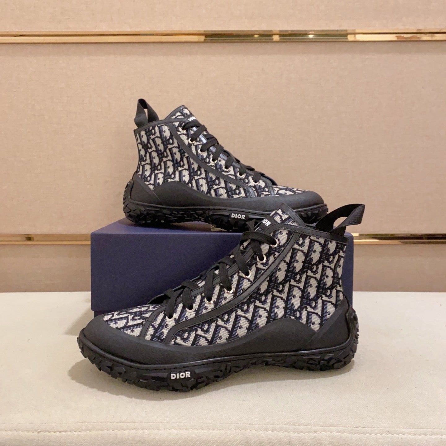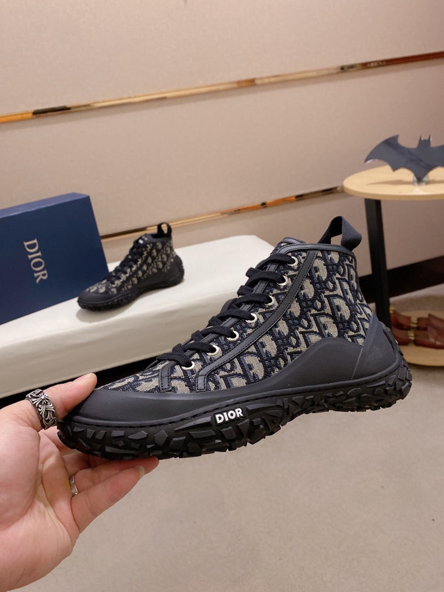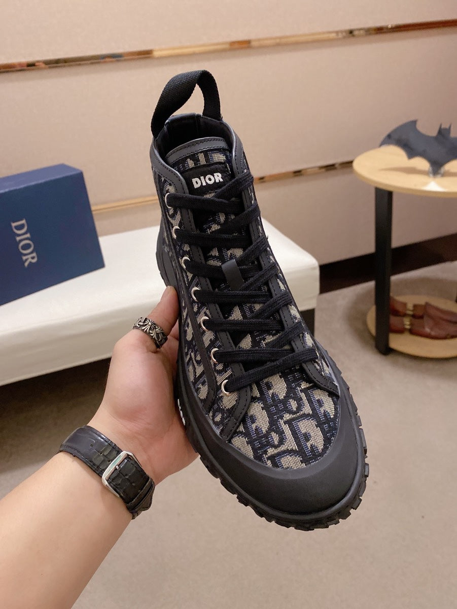 CD B28 HIGH SHOES BLACK AND BEIGE JACQUARD