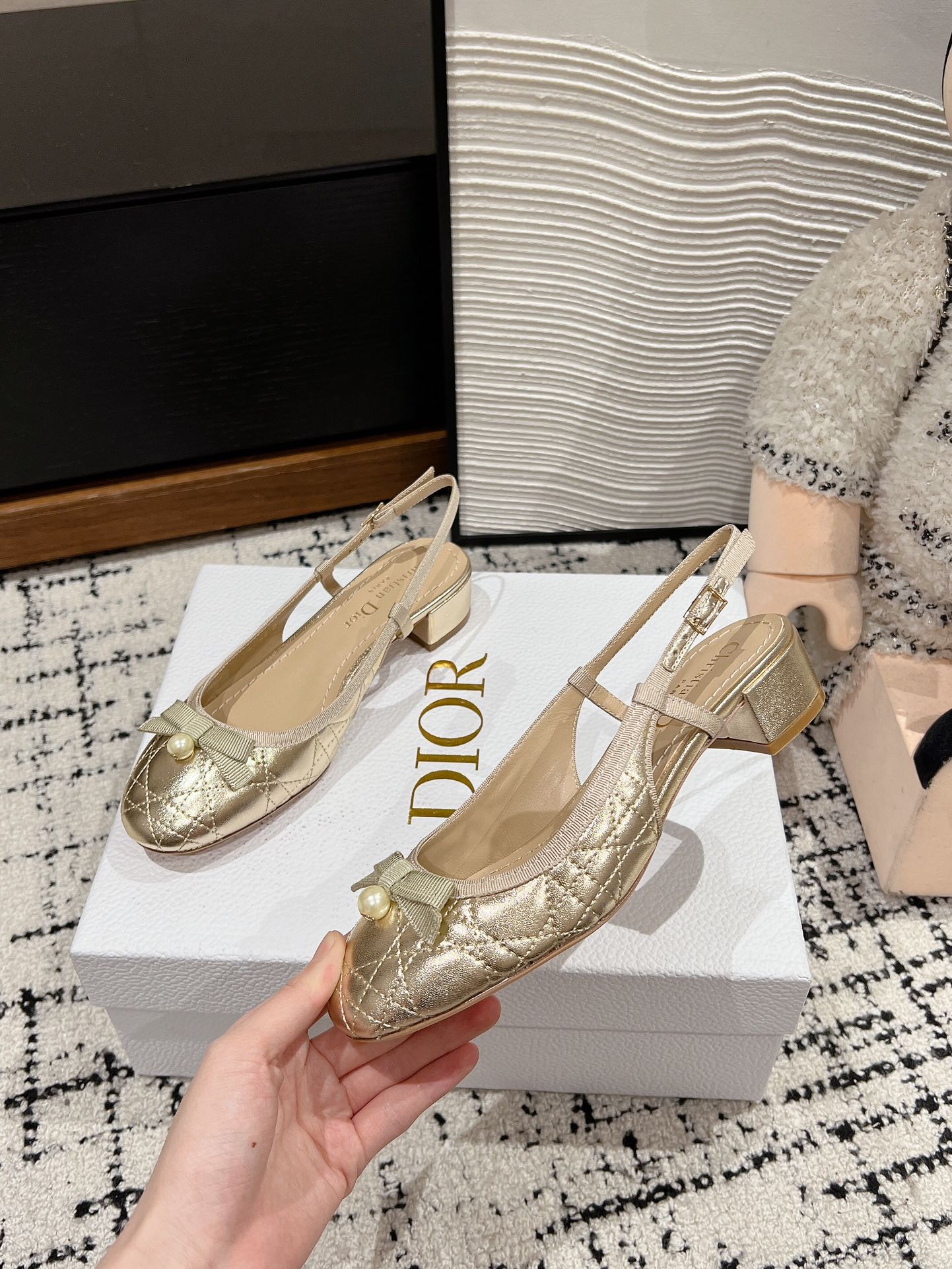CD Ballet Slingback Pump 30mm In Gold Quilted Calfskin 997041